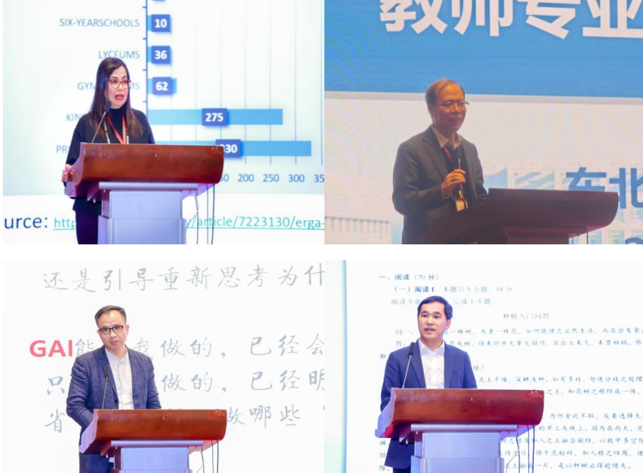 论坛的主题报告环节,塞浦路斯教育研究院院长埃列娜·哈吉卡库教授的《中小学教育伦理导向的、负责任的人工智能政策构架:教师专业学习的促进路径》,分享了塞浦路斯在人工智能教育政策制定中的思考和经验。东北师范大学教师教育研究院执行院长秦春生研究员的《生成式人工智能教育专用大模型(GEST)赋能教师专业发展的思考与探索》,系统介绍了GEST模型的开发背景、核心逻辑及其在教师培训中的具体应用。广州市人民政府督学、广州市天河区教育局原二级调研员张伟春和重庆市渝中区委教育工委委员、教育委员会副主任杨斌两位发言人分享了人工智能时代教师队伍建设的区域创新和特色实践。北京教育学院教育干部学院孟瑜教授,则从更重视发挥教师的主体性作用、更关注教师的全面发展、更强调学校文化的变革等方面,谈了智能时代学校教师队伍建设应需关注的重要转变。