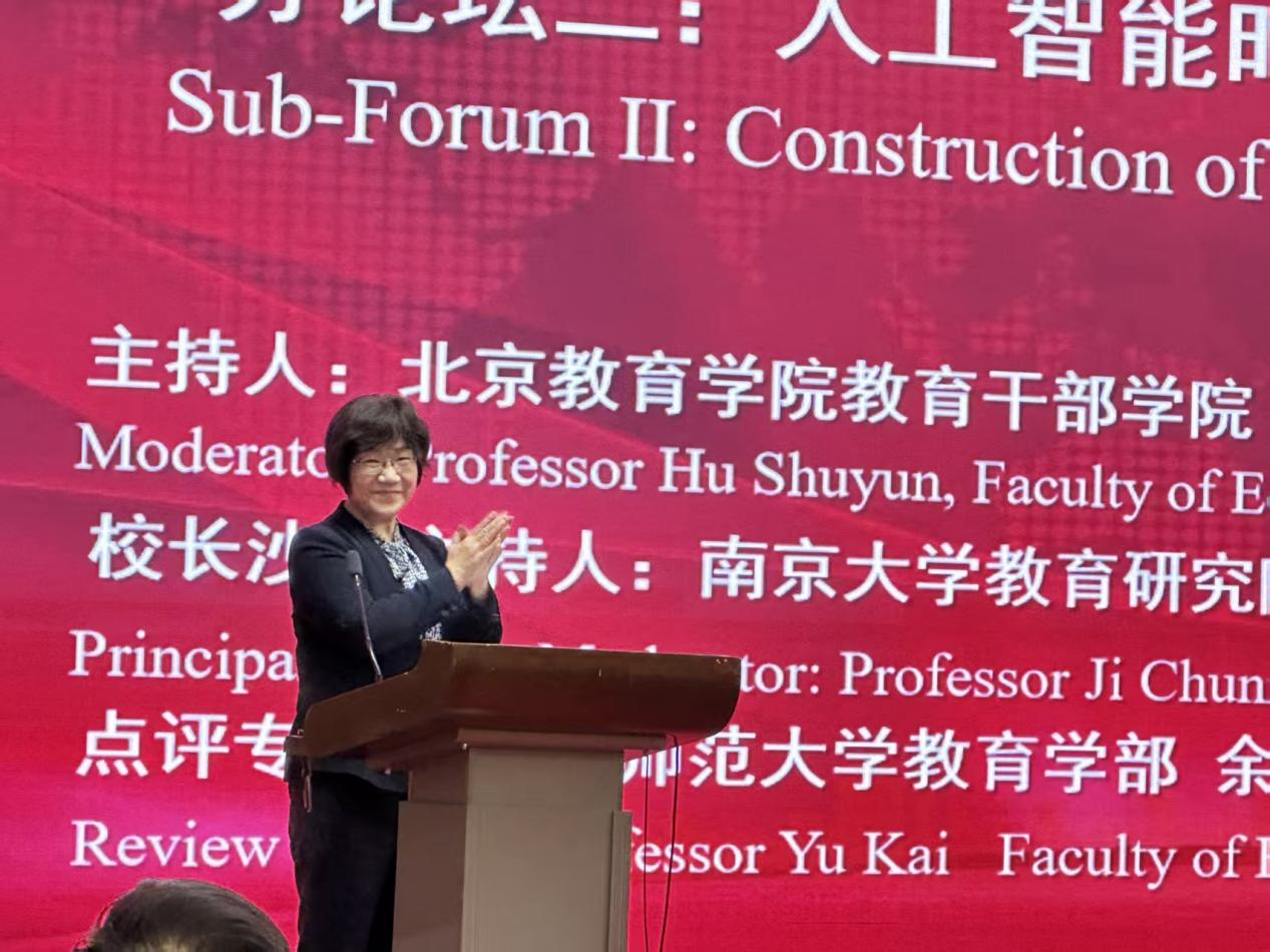论坛由北京教育学院教育干部学院胡淑云教授主持,中国教育学会教育管理分会理事长肖韵竹致辞。肖韵竹理事长谈到,本次分论坛是积极响应全国教育大会精神,推进人工智能时代学校教师队伍建设、推动教育数字化战略而做出的行动和担当。
