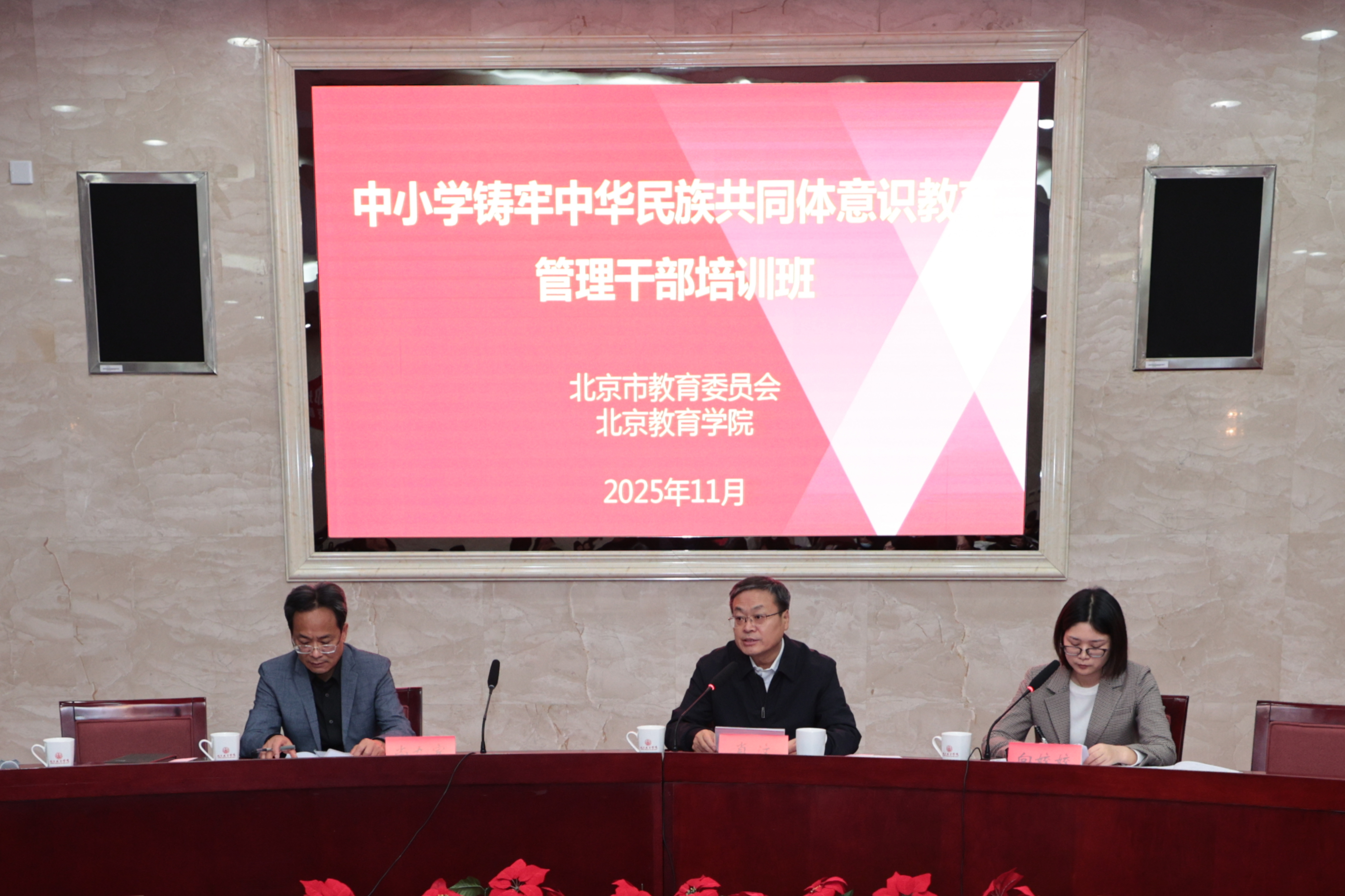 为深入学习贯彻习近平总书记关于加强和改进民族工作的重要思想,进一步有形有感有效推进铸牢中华民族共同体意识教育,提高学校铸牢中华民族共同体意识教育工作的质量,11月11日上午,由北京市教育委员会委托学院举办的中小学铸牢中华民族共同体意识教育管理干部培训班,在中轴路校区百人讲堂正式开班。北京教育学院党委委员、副院长肖汶,市教委基教二处副处长向姣姣、二级调研员慕明高,思想政治教育与德育学院班子成员出席开班式。