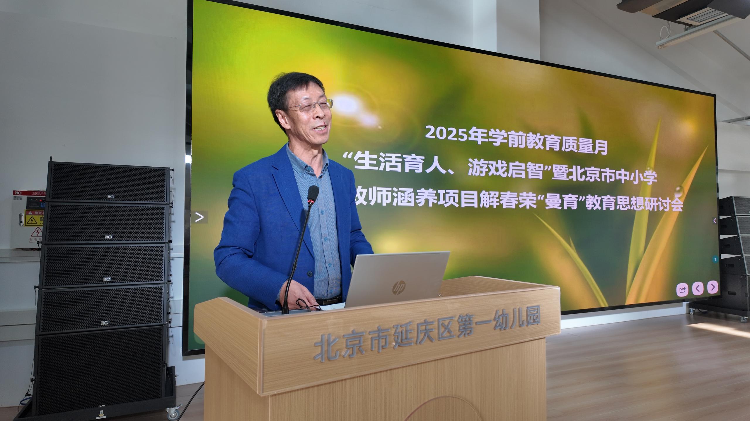 为贯彻落实《中共中央国务院关于弘扬教育家精神加强新时代高素质专业化教师队伍建设的意见》,北京市“十四五”时期中小学教师高端培训任务——北京市中小学卓越教师涵养项目,在结业环节组织开展了学员教育思想研讨会。作为该项目中唯一的学前学段学员,延庆区第一幼儿园解春荣老师带着35年一线实践淬炼的“曼育”教育思想精彩亮相,这一思想以“慢养、漫润、蔓生”为核心,集中展现了项目的育人导向与实践成效。