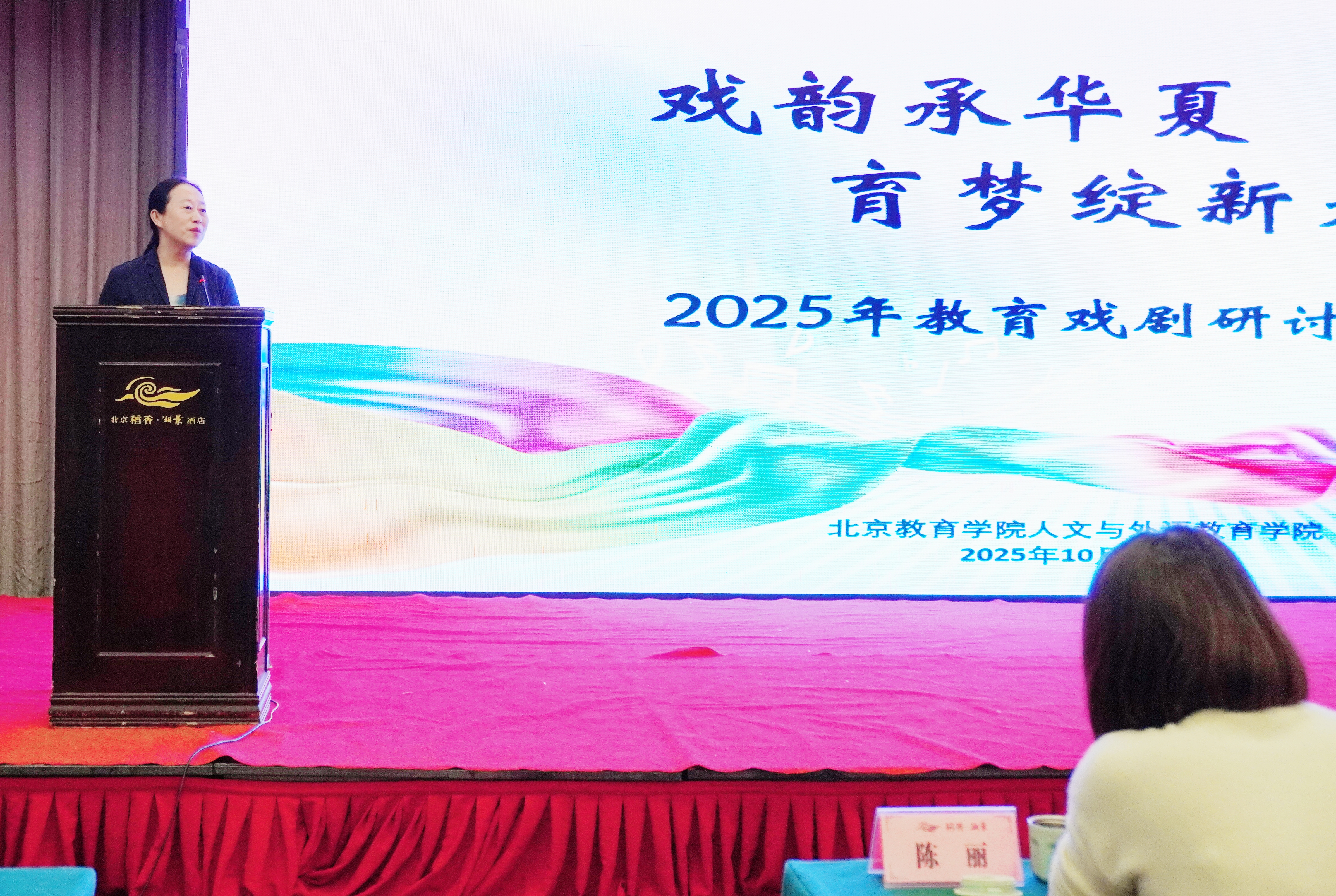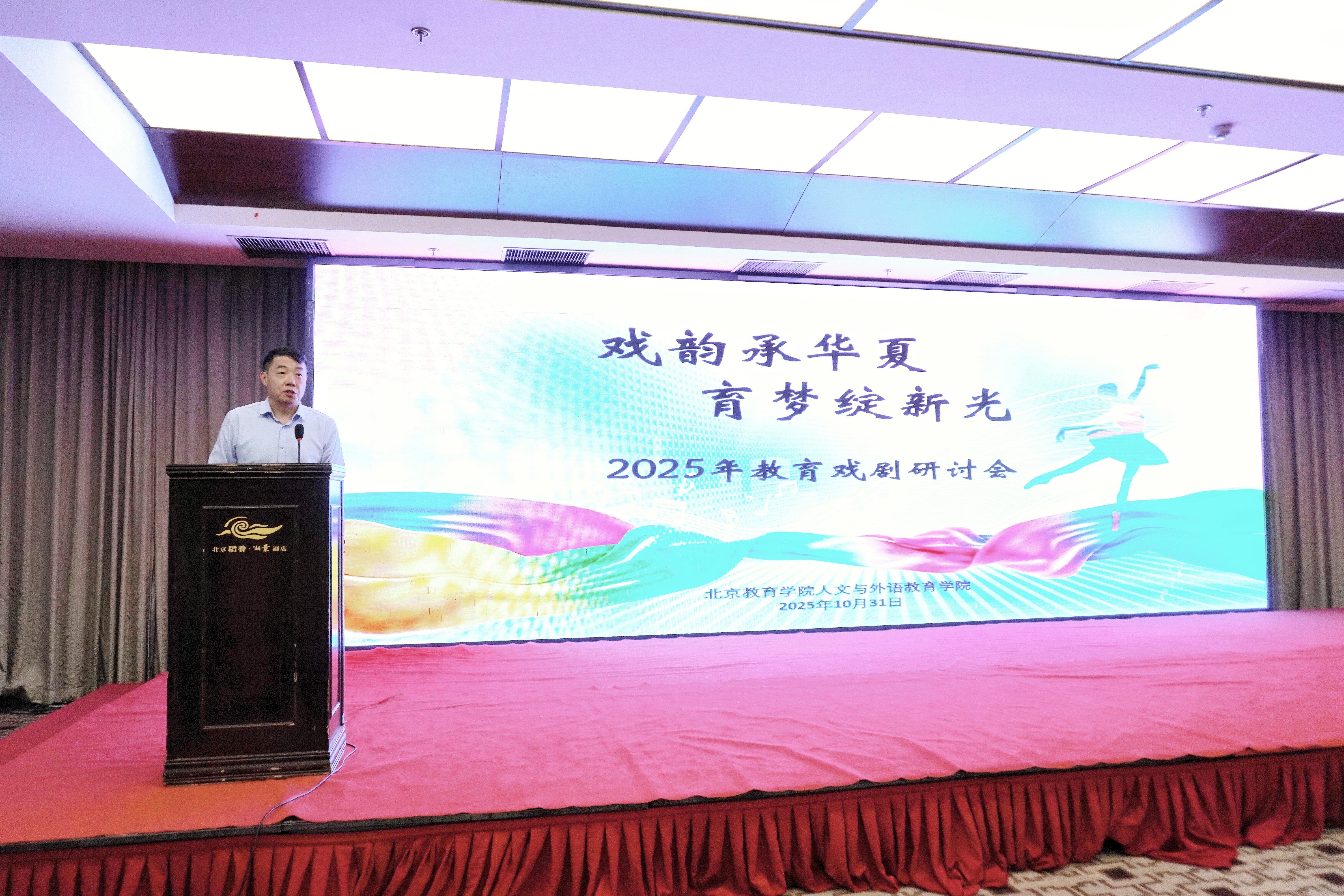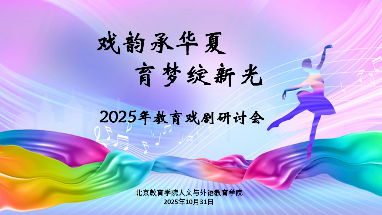 近日,由北京教育学院人文与外语教育学院主办的“戏韵承华夏 育梦绽新光 ”2025 教育戏剧研讨会在稻香湖景隆重举行。本次研讨会旨在深入贯彻党的教育方针,落实立德树人根本任务,进一步推动教育戏剧在学科育人、课程思政与文化传承中的深度融合,为广大教育工作者搭建交流互鉴、共谋发展的高水平平台。