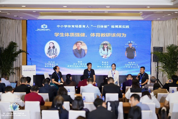朝阳区体育教研员刘萌领衔通州区体质强健专题班体育教师,做了课后服务体能挑战+家庭体能作业的学练展汇报,并现场以自重类、负重类、支撑类、对抗类为主的动作展示了伙伴协同练习。专题班学员丰台区成寿寺小学牛春燕副校长,做了小课间微运动+大课间体能健康操的政策与问题导向、案例开发理念与思路、实践实效的分享,并指引参会人员进行了轻松愉悦的会间微运动。体育强心游戏开发教师通州区龙旺庄小学孙泽、育英学校密云实验小学张立民老师,分别汇报了全员班赛和酣畅玩耍案例开发的理念、实践、动作体验和心理感受等实效。论坛在“学生体质强健,体育教研可何为”主题沙龙中圆满落幕。本次沙龙由体育特级教师工作室学员张跃强主持,特邀教研员、体育教研组长及区域师训代表三方嘉宾,分别从“教研融入跟进”、“学校整校推进”和“区域师训赋能”等关键维度,共探体育教研助力学生体质强健的实践路径与未来方向。