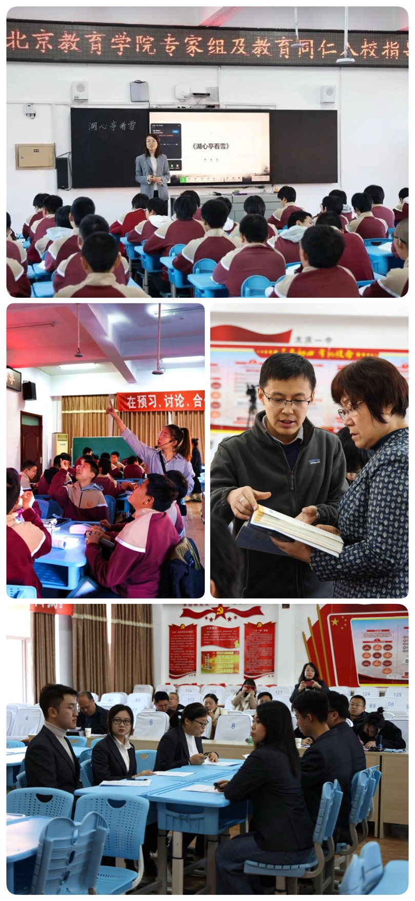 项目团队先后观摩了教师公开课展示、“学为中心”课堂变革微教研及“百书阅读”活动成果展演,并进行诊断与点评。