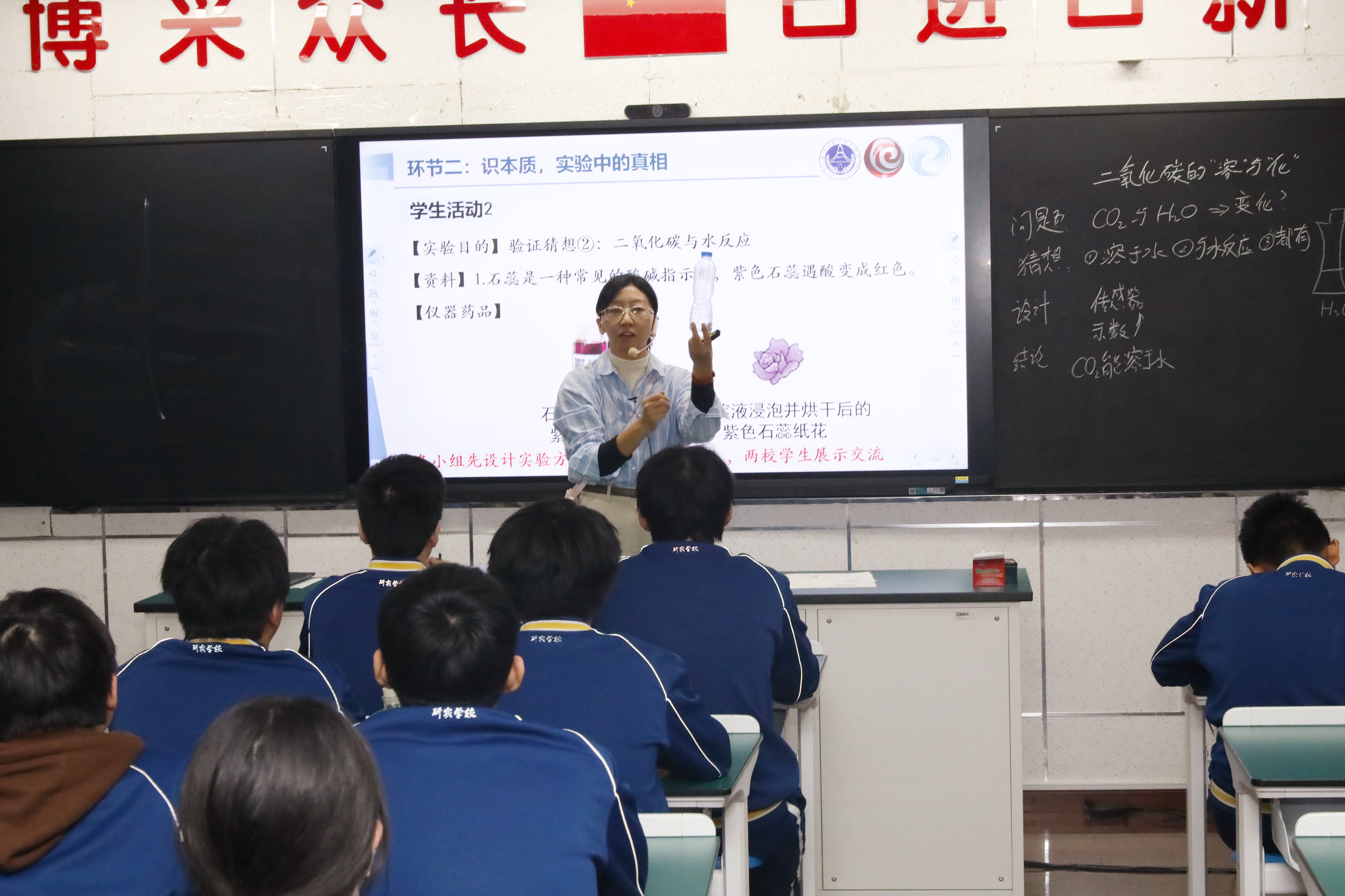 中学数学、物理、化学、生物、地理及小学数学、小学科学七大学科分会场同步开启研讨,各会场围绕专属主题,以“现场课展示+实践案例分享+专家点评指导”的形式,全面呈现数智技术与学科教学融合的创新成果。中学数学分会场聚焦“数智赋能学生数学探究”,突出学生主体性、问题探究性与教学创新性,借助人工智能实现图形转化,破解空间想象难题,助力学生发展几何直观与空间观念;中学物理分会场让数字技术真正“活”在课堂,学生手机秒变实验仪器,人工智能化身专属学习助手,将抽象物理规律转化为实时跳动的数据曲线,既破解了“讲不清、看不见、测不准”的教学痛点,更点燃了学生的探究热情;中学化学分会场创新采用双师课堂模式,以“汽水”为切入点,通过数字化实验与人工智能模拟,引导学生探究二氧化碳溶于水及反应的化学本质,为技术赋能化学教学提供优质示范;中学生物分会场以“数据感知?生命解码”为主题,借助AI、VR等工具赋能实验课堂,现场课聚焦心脏解剖,通过虚实结合与实时反馈,帮助学生打开心脏结构“黑箱”,建立结构与功能相适应的生命观念;中学地理分会场依托QGIS、LSV、妙懂课堂等技术,围绕“引汉济渭”“全球大豆贸易”等跨区域议题,聚焦区域认知、空间思维等核心素养,引导学生开展数据化空间分析与智能决策;小学数学分会场融合GeoGebra等多元数智工具,通过实时反馈实现全流程精准评价,推行人机协同备课模式,在缩短备课时间的同时,提升教师教学设计能力与批判思考力;小学科学分会场通过XR、AR、AI等技术,分别突破“昼夜交替”认知难点、完成“火山成因”虚实探究、形成“生态瓶设计”学习闭环,彰显“技术简化难点、互动激发兴趣、实效提升质量”的价值。