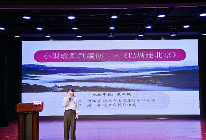 此前该项目成果汇报已在10月29日的第三期戏剧主题工作坊中精彩呈现,赢得全市艺术教育同仁与专家的高度肯定。汇报活动在诗朗诵《艺韵润心 师者同行》中拉开帷幕,老师们以真挚情感诠释艺术教育的魅力与担当;东城区灯市口小学周钰景老师分享的《巴塘连北京》小型歌舞剧案例,展现了音乐与戏剧融合的教学实践成果;东城区回民实验小学李睿颖老师带来的京剧《打龙袍》选段,尽显传统戏曲深厚底蕴;学员们演绎的形体表演《春颂》与戏剧主题表演《梦开始的地方》,分别以灵动身姿诠释春日生机、以教育故事回望育人初心,引发全场强烈共鸣,最后全体人员共同唱响《歌唱祖国》,将家国情怀融入美育实践。