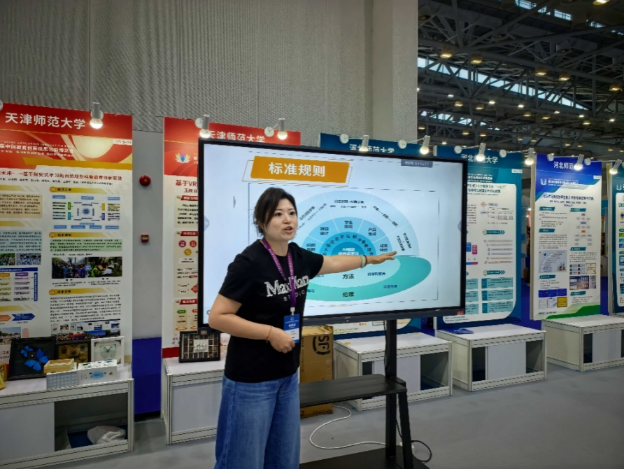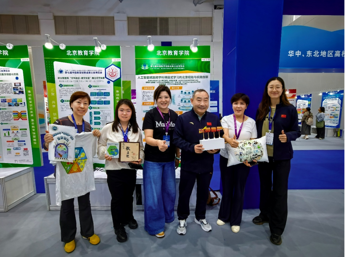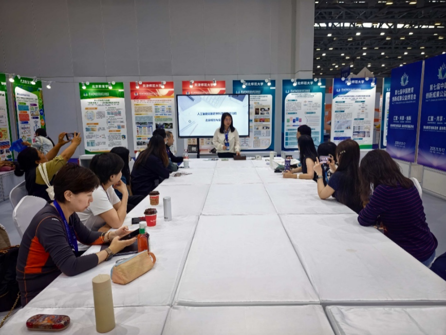 北京教育学院教育干部学院胡佳怡副教授、崔钰婷博士及团队学校教师开发的“AI赋能跨学科项目式学习的北京经验与实践创新”成果受邀参与此次活动,在现场通过成果展板、工作坊、视频呈现和成品展示等方式宣传。该成果根植于北京市跨学科项目式学习设计实施与优化能力提升研修项目,以及北京教育学院第三轮协同创新项目,成果内容指向AI赋能跨学科项目式学习的实践创新,以“智联·融创·共生”为导向,以AI赋能、学科融通、真实学习和创新育人为理念,提炼出AI赋能项目式学习的有效路径。项目团队充分展示了成果并与嘉宾进行了互动交流。