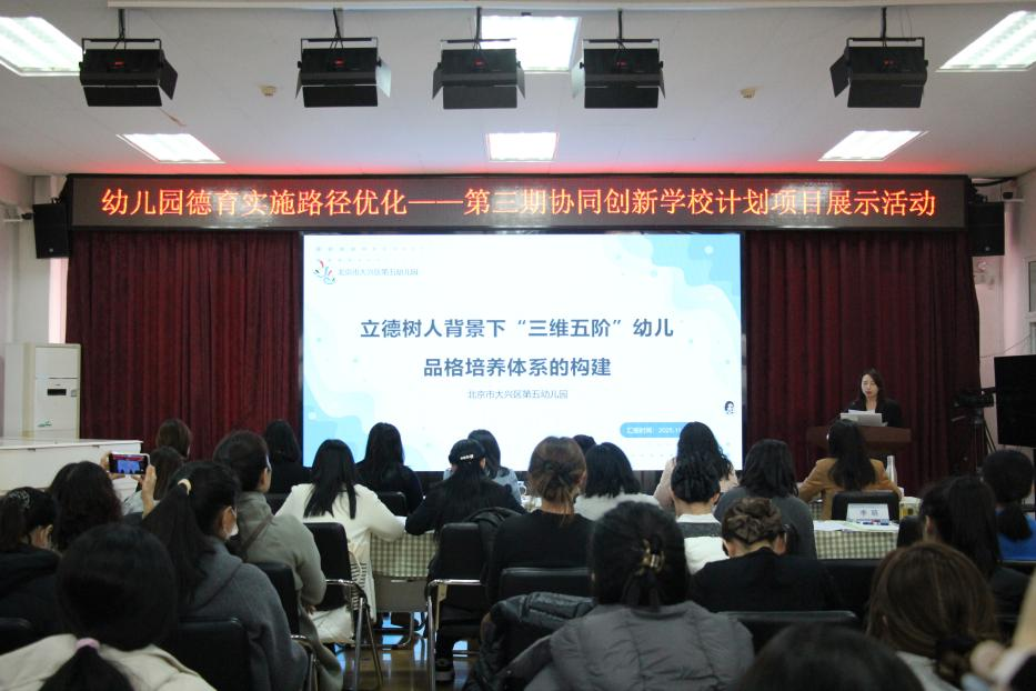 2025年11月25日,北京教育学院第三期协同创新学校计划“幼儿园德育实施路径优化”项目展示活动在北京市大兴区第五幼儿园顺利开展。