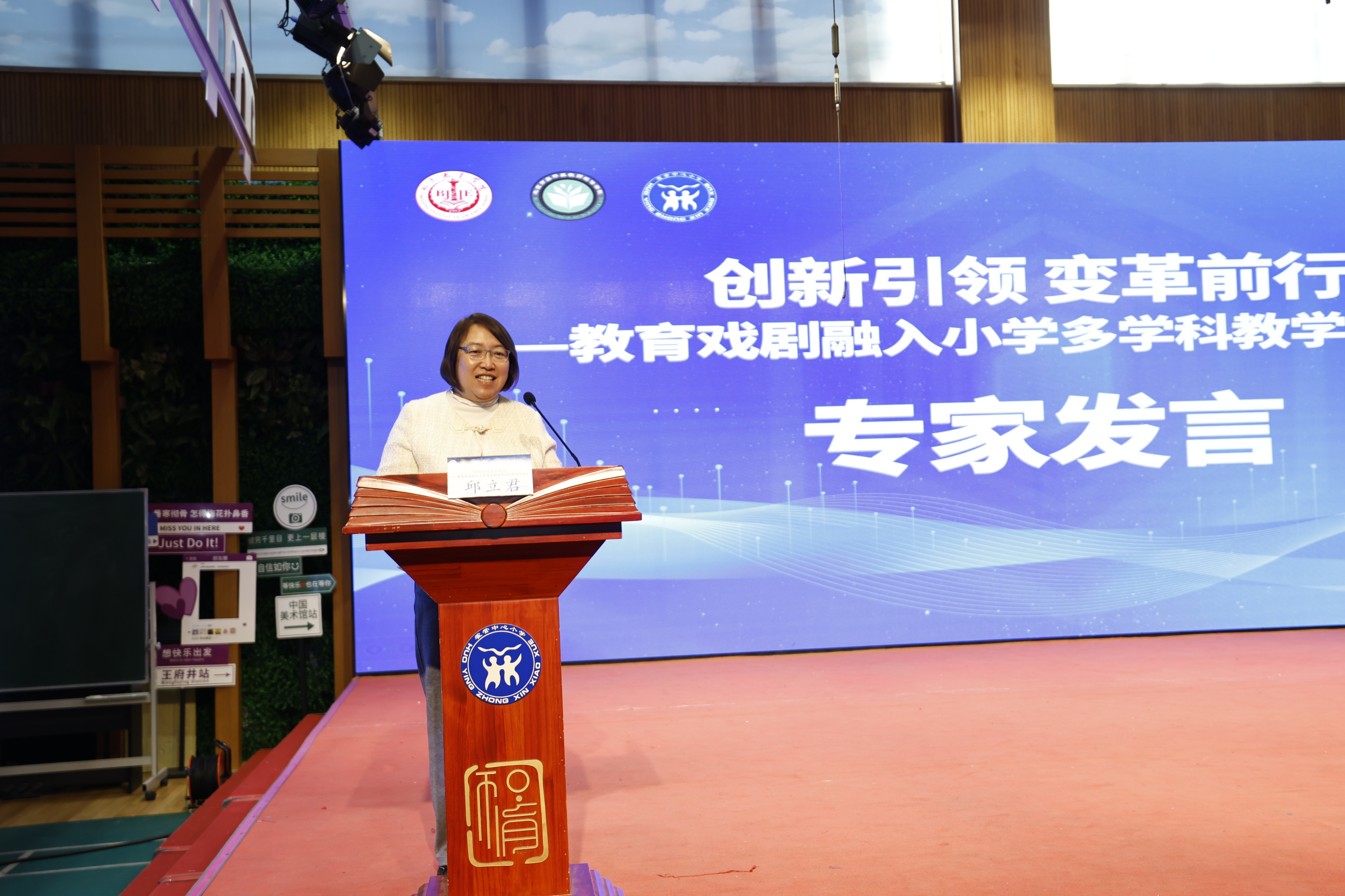 学校戏剧社团还演出了原创红色剧目《闪闪的红星》,展现出教育戏剧与德育融合的生动成果。王洪燕校长系统介绍了学校依托“和育”文化,构建教育戏剧融合课程体系的“三级路径”与“四轮驱动”机制,形成了丰富的课例与范式资源库。