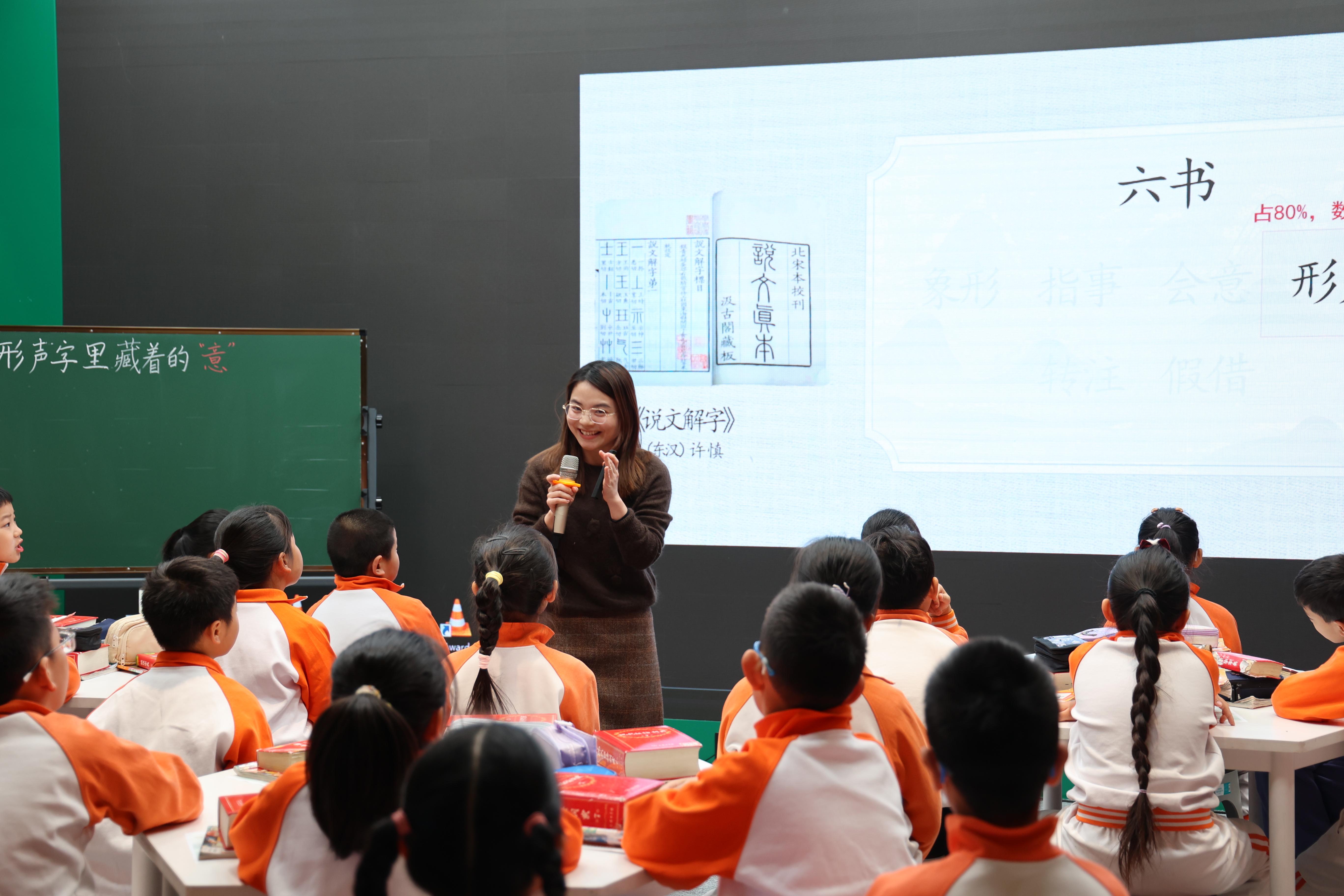 在汉字教学研究中心的专业指导下,三节研究课集中展示了“梳理与探究”理念在不同学段的实践成果:杨雪飞老师主讲的二年级研究课《有趣的“鸟”》。课堂以“有趣的鸟儿”为主题,从学生的生活经验出发,引导学生观察带“鸟”“隹”偏旁的汉字,通过猜字、拼字等活动体会字形与字义的联系,并融入成语诗句欣赏与书写指导,生动体现汉字学习的趣味与深度。张竞予老师主讲的四年级《形声字原来这么有料!》,立足中段学生错别字频发现象,围绕形声字学习这一重点内容展开教学设计。教学中,针对错别字现象,引导学生观察归纳形声字形符表意特点,将所学迁移至纠错实践,了解字义演变,层层推进任务,激发学生持续探究汉字的兴趣。特级教师张海宏老师主讲的五年级《有“情绪”的量词》,立足“量词使用泛化、使用不准确”等实际问题,以“有‘情绪’的量词”为主题,以《场景歌》为依托,系统探究量词使用。学生从搭配规律、形象描写、情感色彩及字源文化等多角度,认识量词“有规则、有形象、有情绪、有文化”的特点,并在情境中学习准确、生动地运用量词,提升语言表达力。三节课均立足学情,设计清晰,注重实践与迁移,展现了汉字教学的多样思路与学生思维的积极生长。