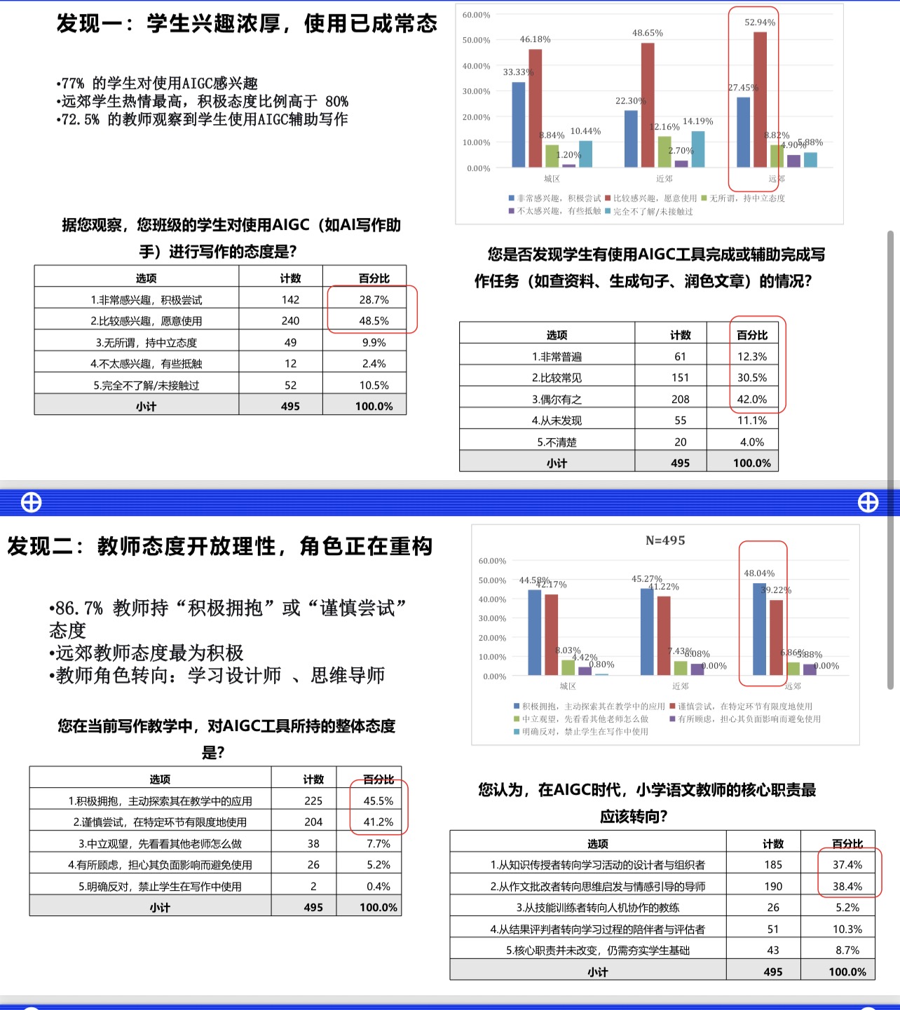 活动期间,北京教育学院人文与外语教育学院倪燕发布的《生成式人工智能背景下的习作教学现状调研报告》引发了广泛关注。该报告基于对北京市495名小学语文教师的调研,客观揭示了AI已深度进入教学场景,但应用多集中于“写作后”环节,在“写作前”思维激发与“写作中”个性支持方面仍显不足的现状。报告指出的区域培训需求差异以及加强系统引导的呼吁,为培训课程建设提供了实证依据。