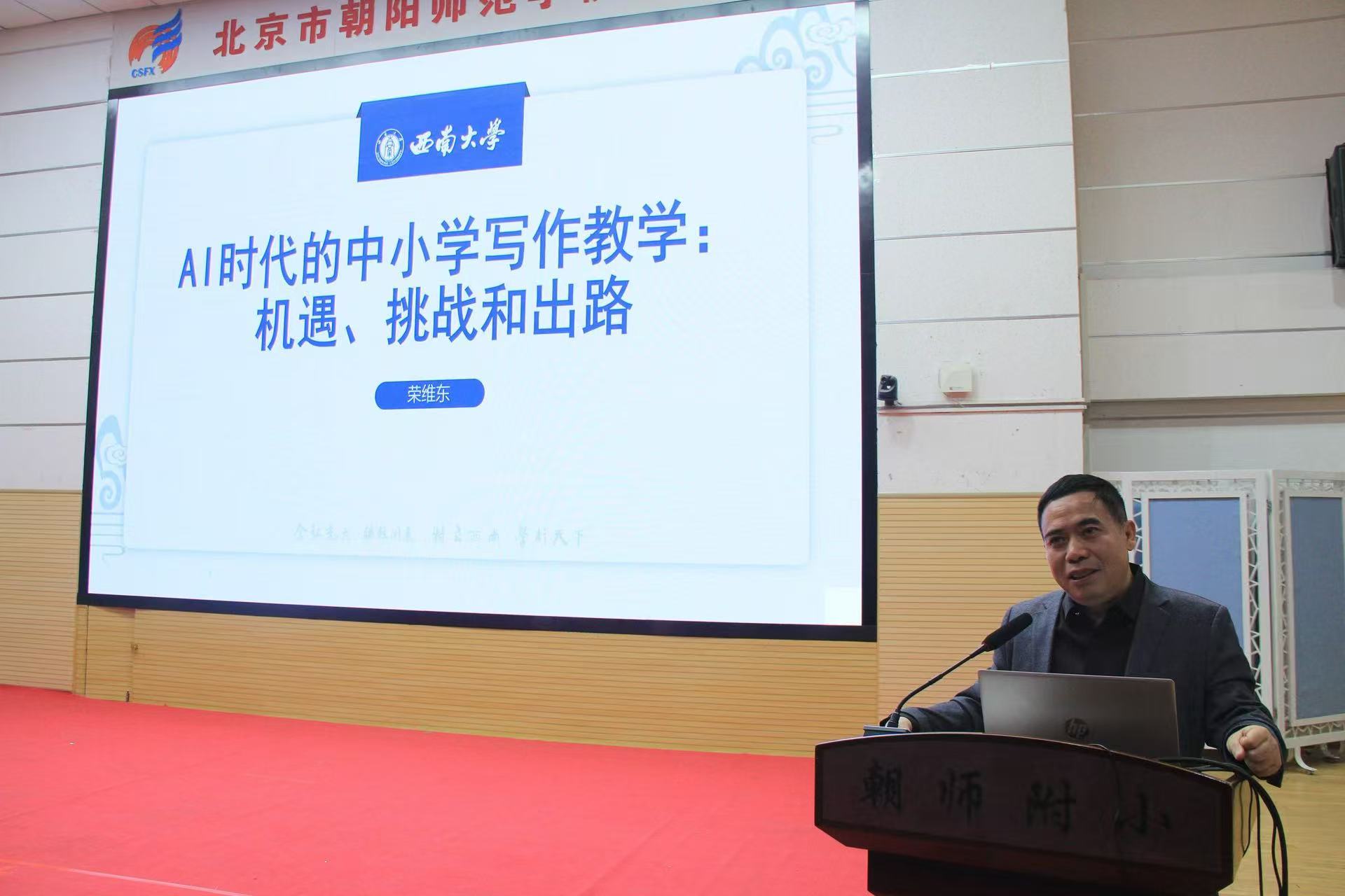 西南大学荣维东教授、首都师范大学崔嵘教授、北京教育学院李怀源教授等多位专家,分别从技术伦理、创意激发、跨学科整合、实用文功能等维度进行深度讲座,共同强调了写作教学在技术赋能中始终要坚守“育人”本位,发展学生的真实表达力与思维品质。