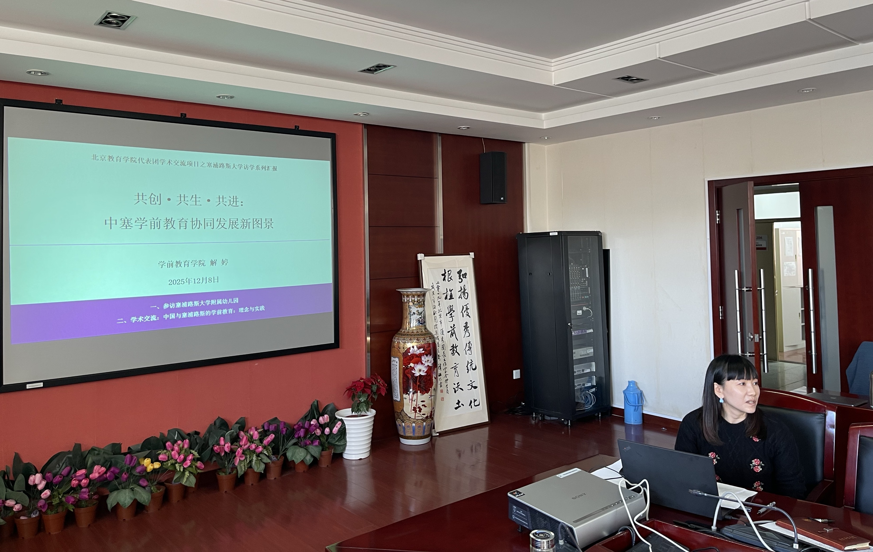 解婷老师分享了赴塞浦路斯大学的访学经验。通过对比中国与塞浦路斯在学前教育理念与实践方面的异同,她强调因音乐应成为环境创设的底色,让美育浸润幼儿园每一处空间。基于与塞浦路斯大学学前教育系主任的深入交流,双方共同明确了三个潜在合作方向:一是共建中塞游戏教育研究联合实验室;二是构建教师发展的双向赋能模式;三是打造实践智慧云端共生体。