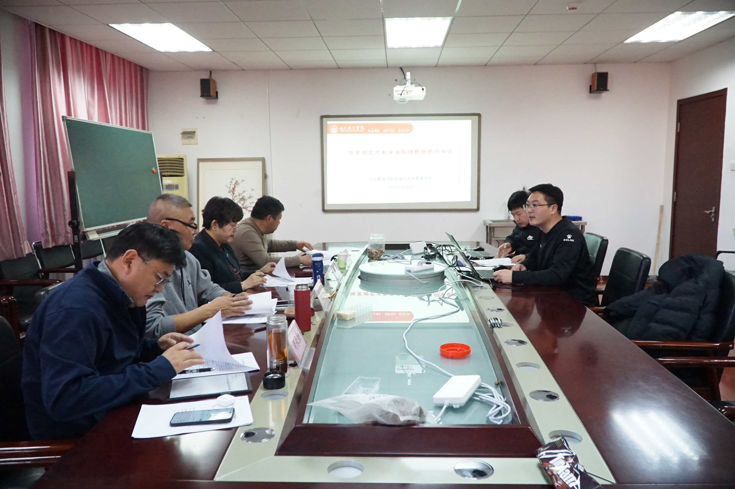 12月8日下午,体育与艺术教育学院于黄化门校区组织召开院级课题结题评审会。会议邀请西城区教育研修学院体育教研员吉星,朝阳区教师发展学院特级教师李磊,昌平区教师进修学校教研员、正高级教师班建龙,海淀教师进修学校体育教研员胡永恒担任结题评审专家。会议由体艺学院副院长韩金明主持,课题负责人及课题组成员参加了本次结题评审会。