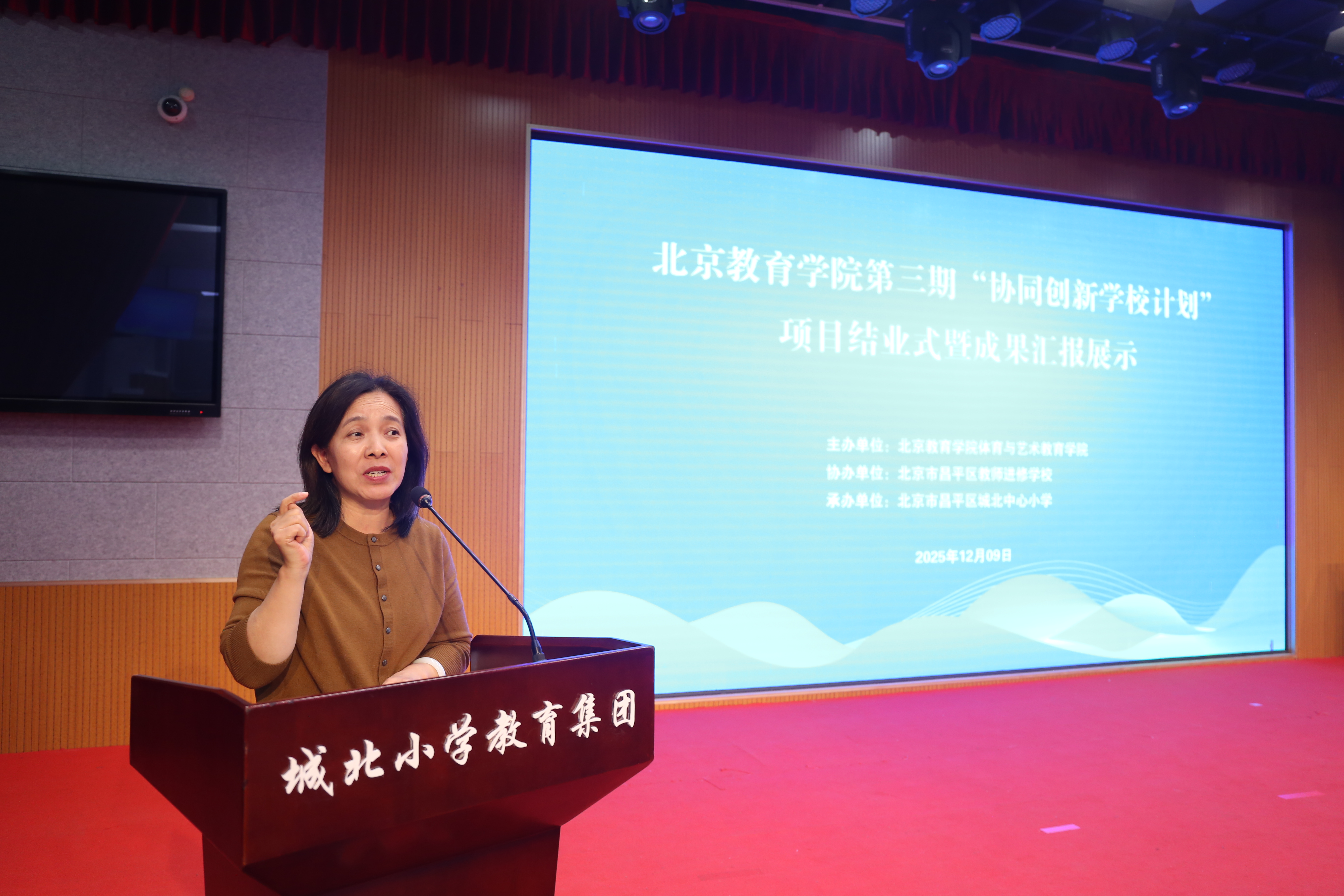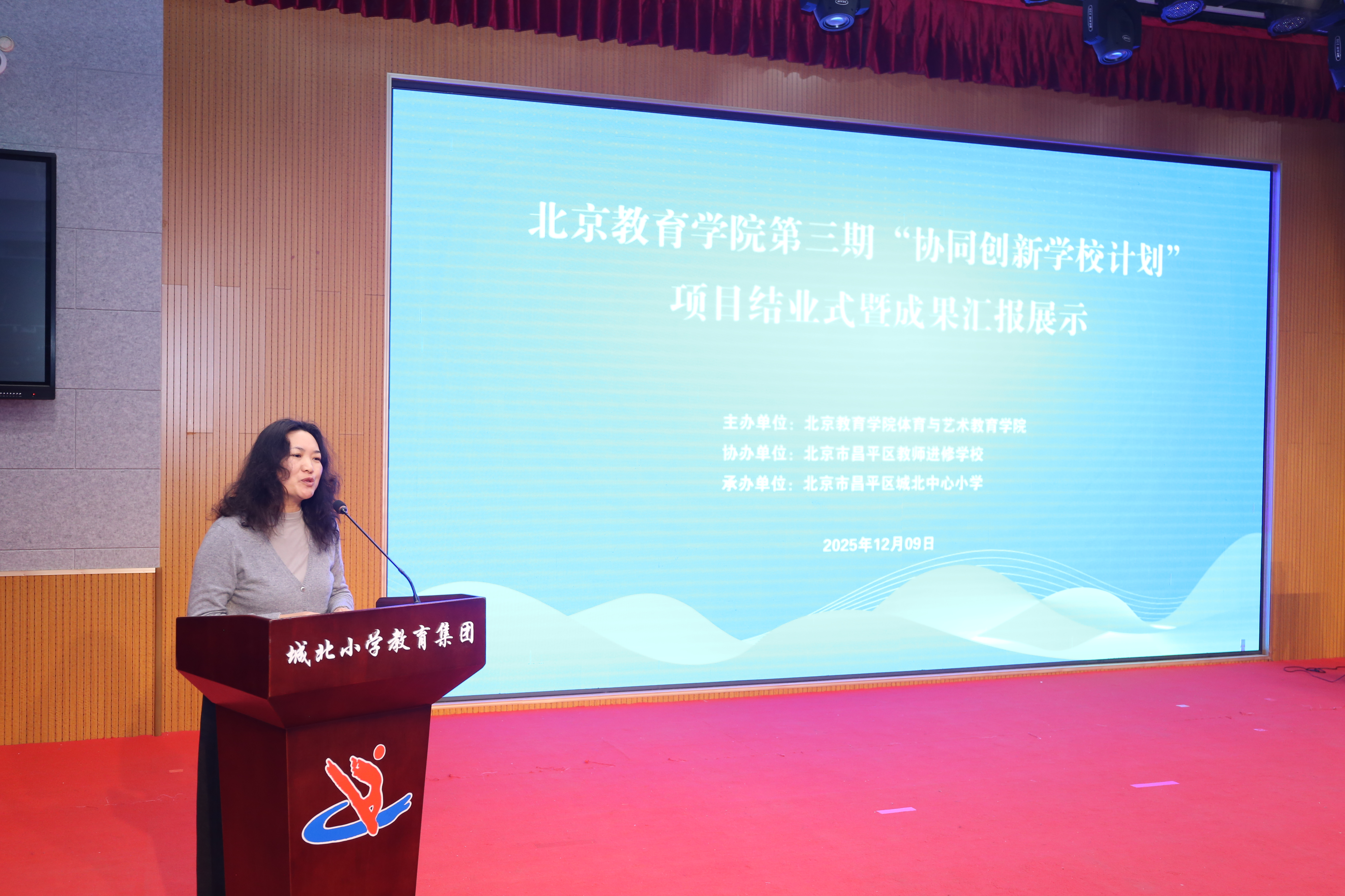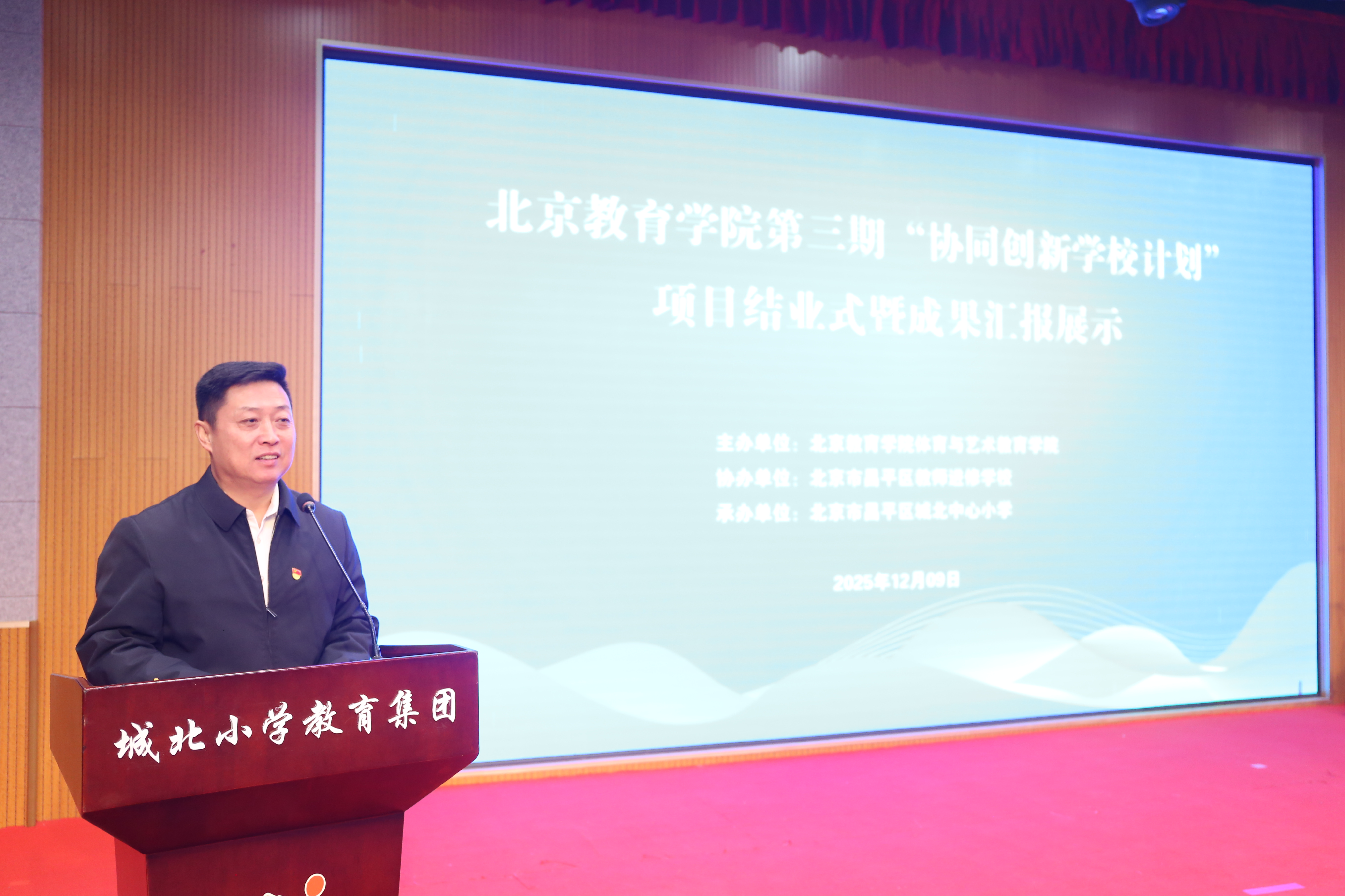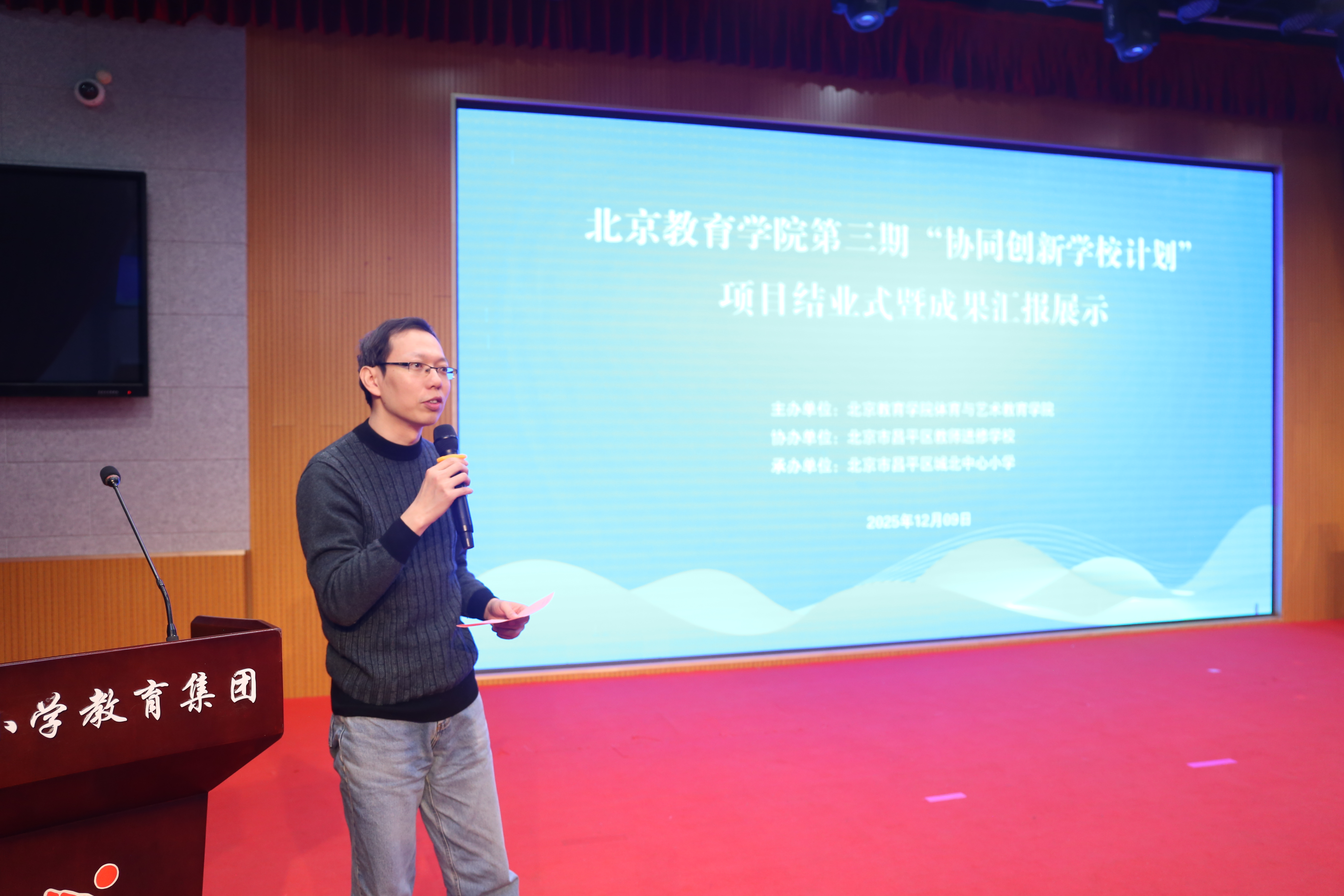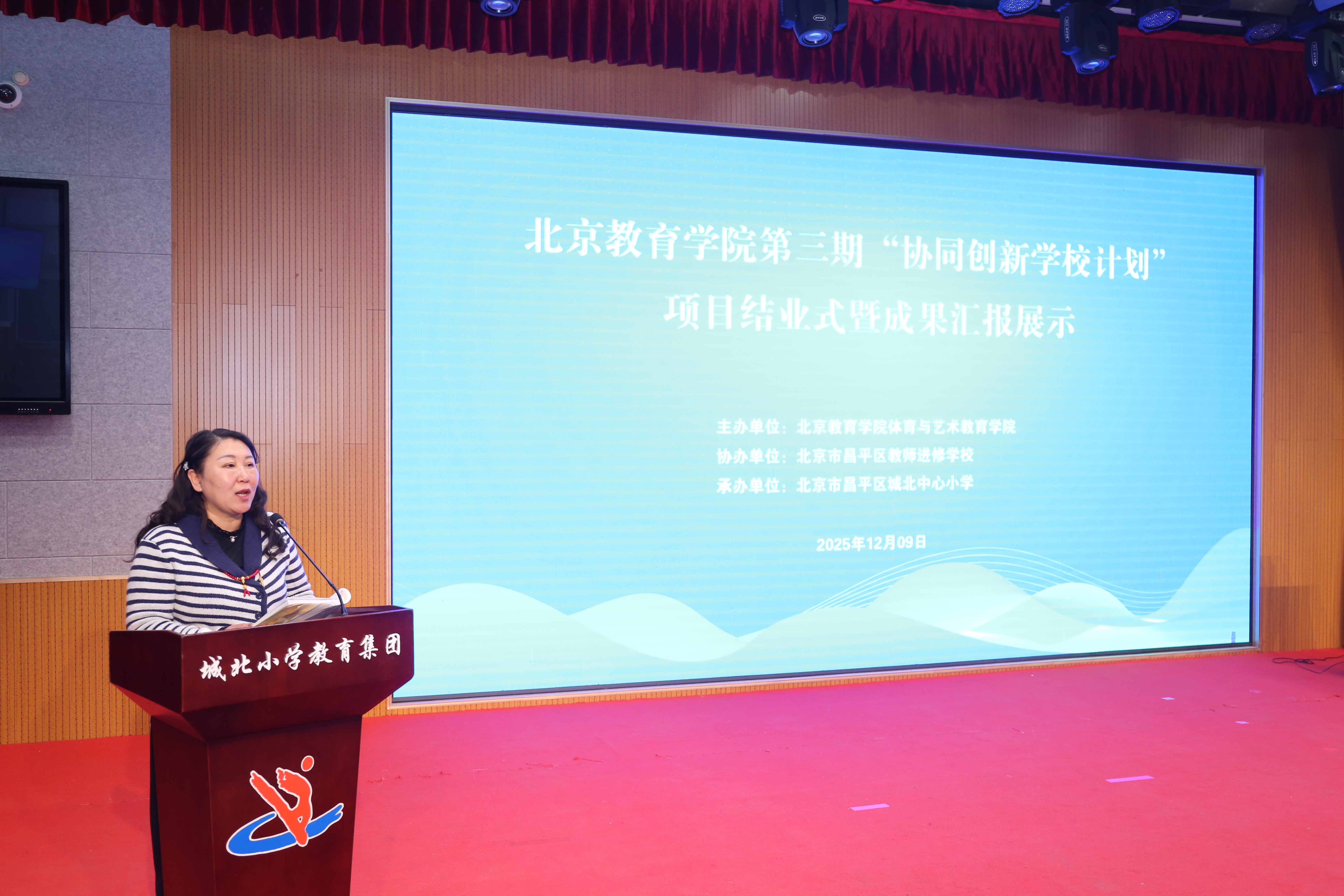 2025年12月09日,由北京教育学院体育与艺术教育学院主办,北京市昌平区教师进修学校协办、北京市昌平区城北中心小学承办的北京教育学院第三期“协同创新学校计划”项目结业式暨成果汇报展示活动,在城北中心小学六街校区阶梯教室举行。