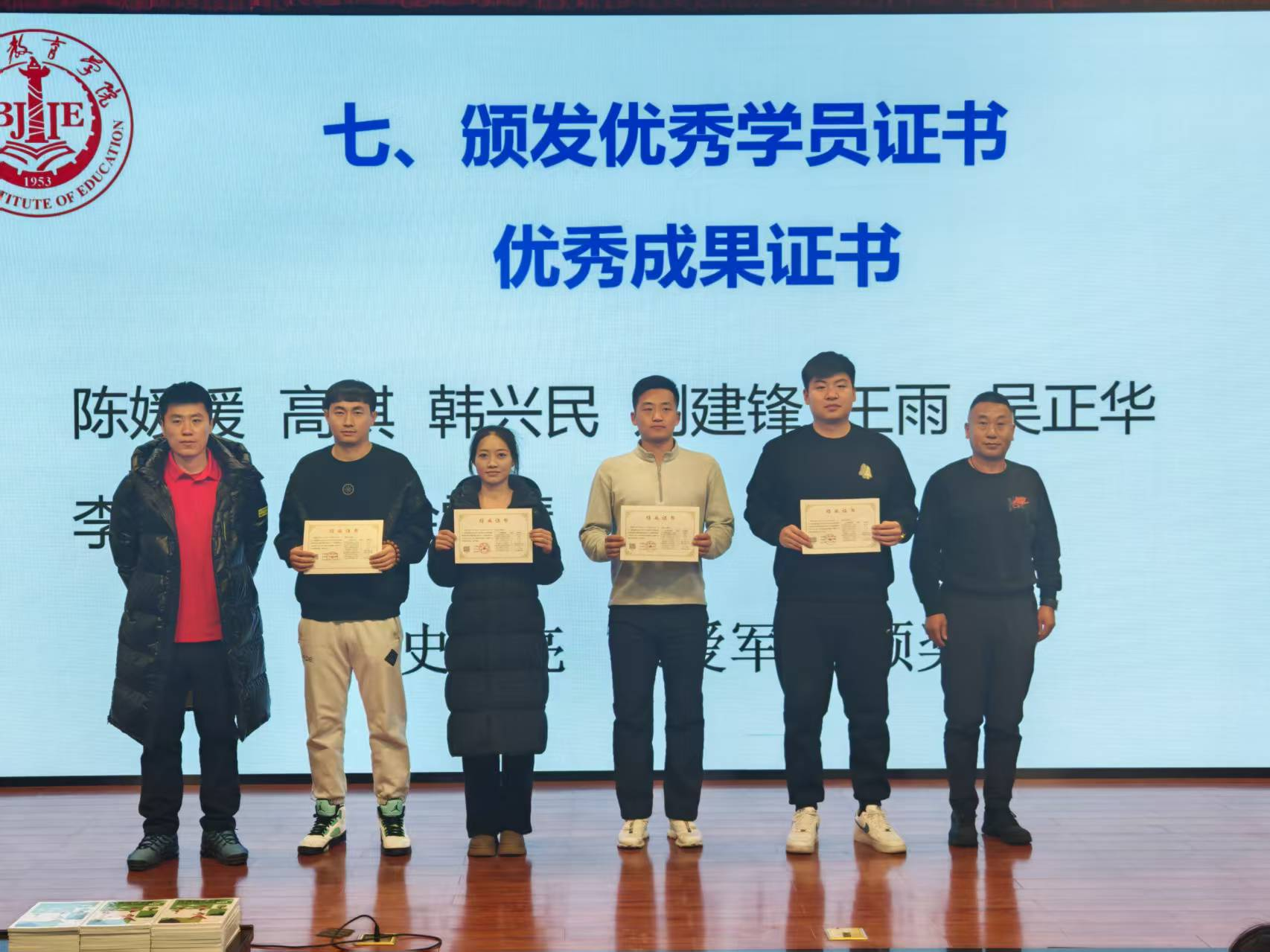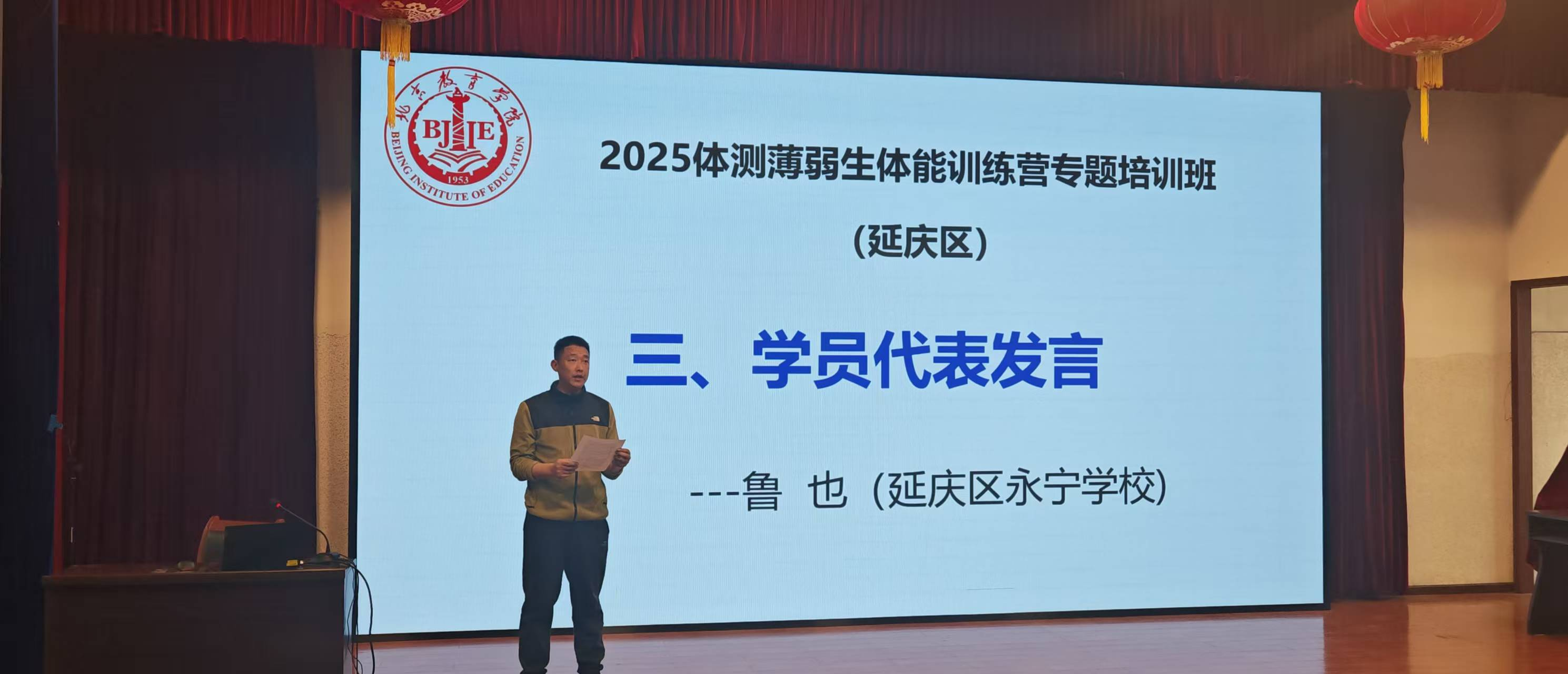 四、学员代表发言 学员代表鲁也作为学员代表上台发言,深情分享了为期一年培训的收获与体会。他表示,通过培训不仅系统掌握了体测薄弱生的科学训练方法,更在教学理念上实现了升级,尤其是“一生一案”的个性化教学模式让自己受益匪浅,未来将把所学知识充分运用到日常教学中,切实帮助更多体测薄弱生提升体能水平。