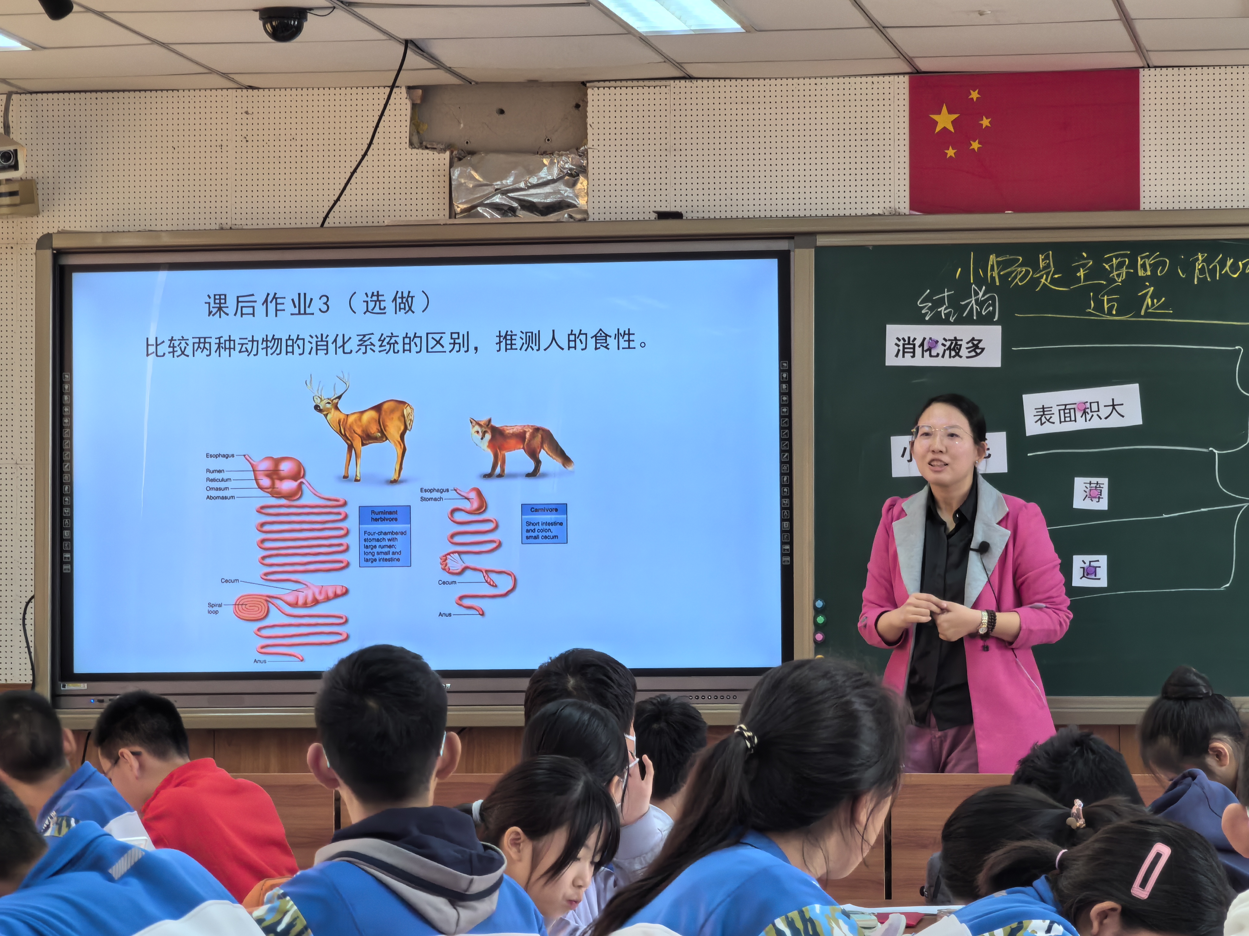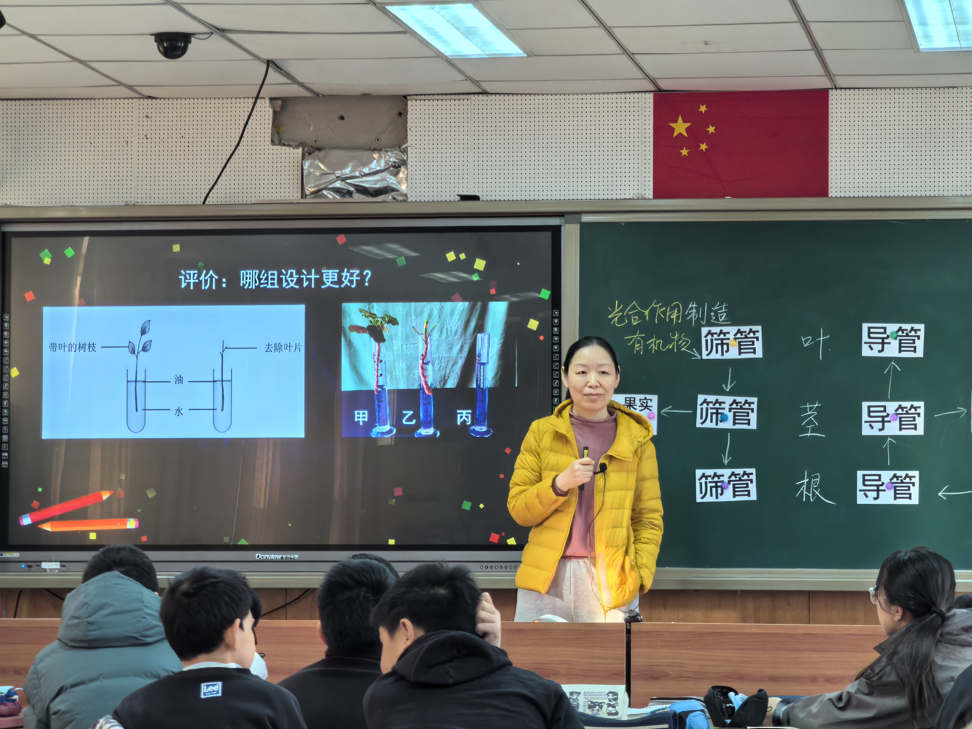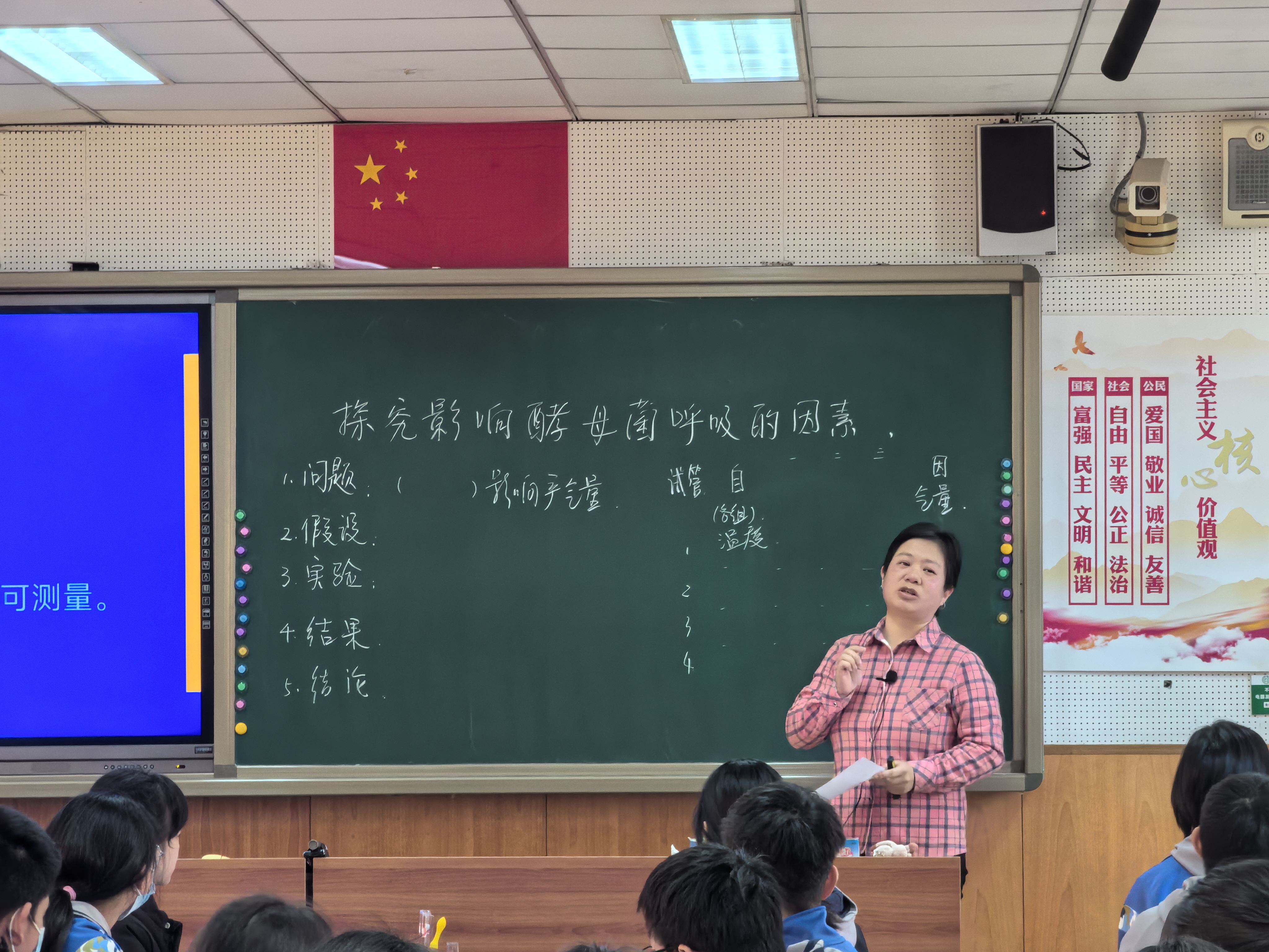 三位教师首先进行实验教学研究课展示。授课教师以核心素养为导向,设计了兼具探究性与实践性的教学活动:通过引导学生评价植物蒸腾作用实验设计,助力学生直观理解蒸腾作用是植物体内水和无机盐运输的主要动力;借助单一变量控制原则,让学生动手操作实验,自主验证影响酵母菌呼吸的关键因素;围绕小肠利于消化和吸收的结构特点,通过模型制作的方式,深化学生对结构与功能相适应观念的理解。