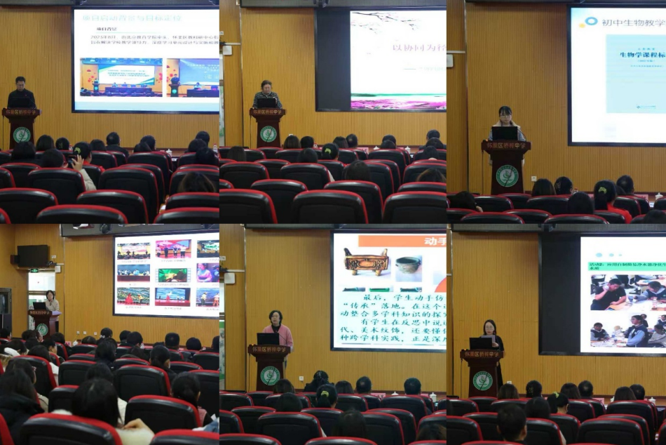 此后,桥梓中学的尤凤林、高春丽、张建英、陈雪霞、刘晓婷、于宏丽六位老师分别发言,各自介绍了学校整体、英语学科组、语文学科组、历史、生物、化学学科三年来的项目推进探索。