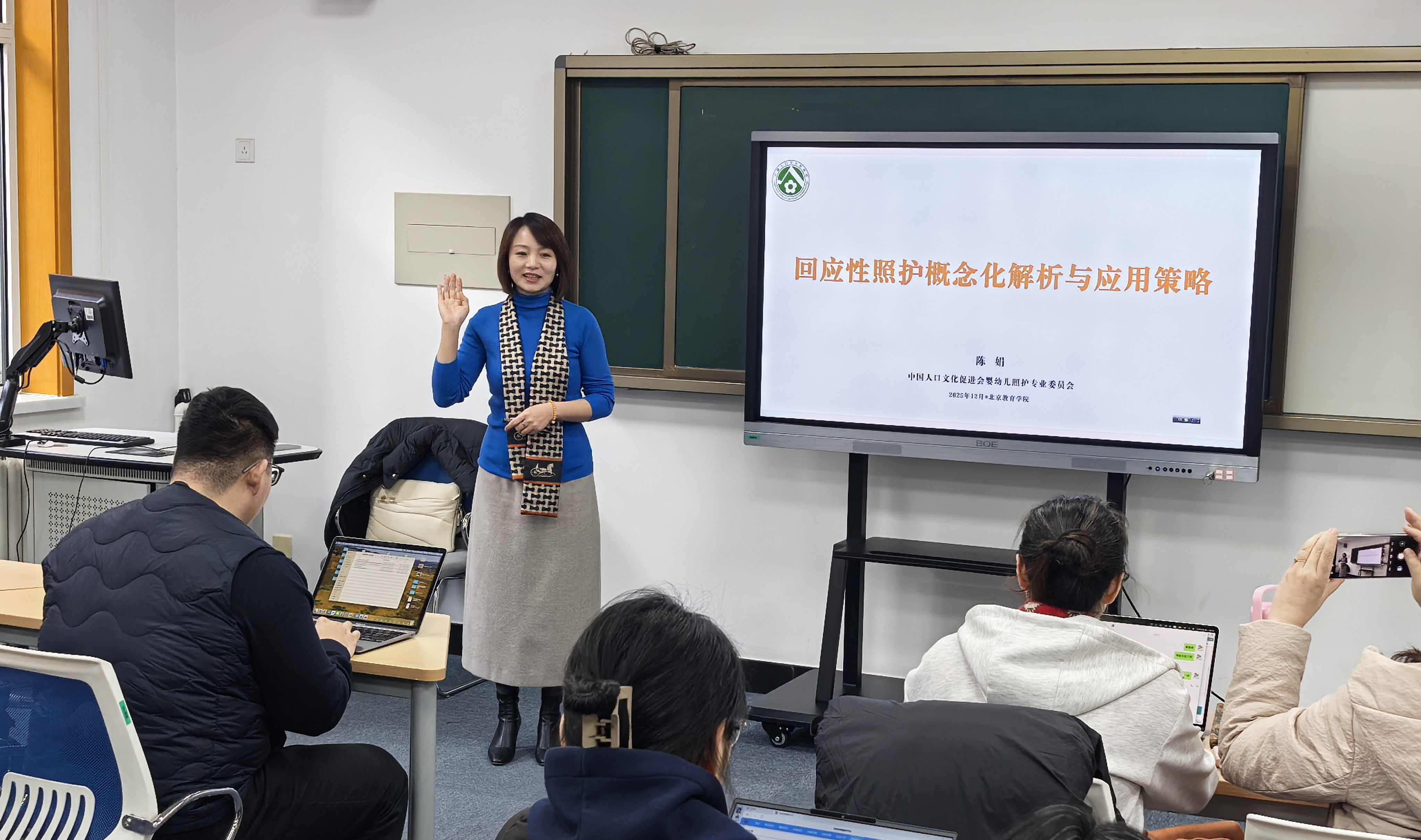 为提升面向0-3岁婴幼儿托育服务专业水平,以适应托幼一体化发展新要求,12月15日,学前教育学院在北京教育学院黄寺校区成功举办第十一期“星火”系列教师沙龙活动。本次活动特邀中国人口文化促进会婴幼儿照护专业委员会秘书长陈娟博士作专题报告,学院全体教职工参加,沙龙由院长谢志东主持。