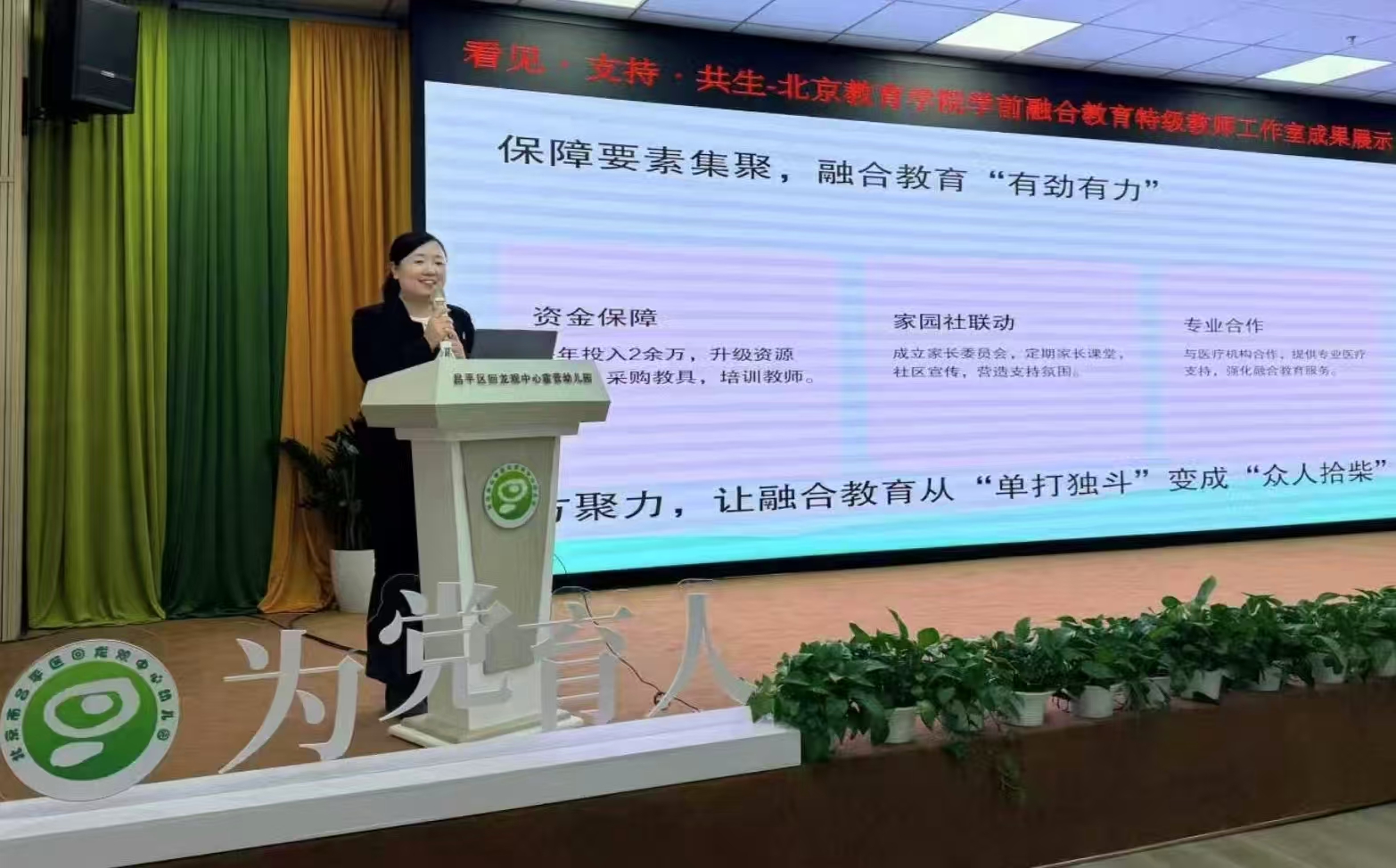 北京教育学院学前融合教育特级教师工作室自2024年启动以来,以“赋能教师、滋养儿童”为使命,为学员们搭建了学习、交流、实践的优质平台。两年来的专业探索与实践深耕,见证了教师成长与幼儿发展的双向赋能。“看见”,是放下标签、尊重差异,用心发现每个孩子的独特需求与成长潜力,这是融合教育的起点;“支持”,是用专业的理念与方法,为特殊需要儿童搭建成长阶梯,也为教师赋能,这是融合教育的核心;“共生”,是让所有孩子在包容的环境中相互滋养,让园所、教师、家庭形成教育合力,这是融合教育的美好愿景。“看见”每一个孩子的独特价值,“支持”每一位教师的专业成长,最终实现“共生”的美好教育生态。本次展示活动在“看见·支持·共生”的主题引领下圆满落幕。未来,工作室将继续以爱为基、以专业为路,在融合教育的沃土上深耕不息,让每一个孩子都能被看见、被支持、在共生的教育生态中茁壮成长。