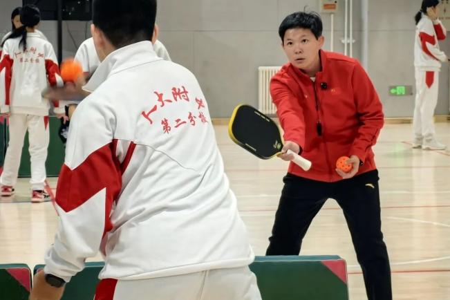 课堂展示培训环节,工作室教师进行现场教学展示。张媛媛老师的匹克球教学以“口诀+赛事”实现“技能+人格”双培育,刘庆老师的篮球“持球突破”课落实“学练赛评”一体化,为参训教师提供了新兴项目教学与传统项目创新的双重参考。