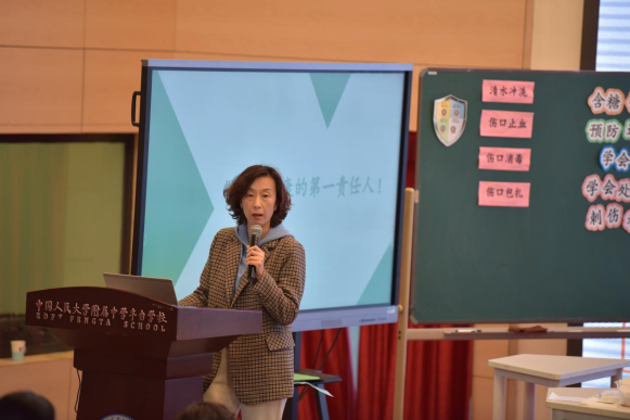 工作室学员芦海棠老师带领其课题组成员呈现健康教育与体育教学融合课例:潘高峰、吴珍珍等分别围绕饮食健康、用眼卫生、情绪调节、外伤急救开展教学,凸显“健康第一”理念。