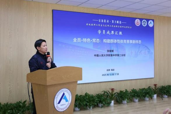 活动二:京海联动共研共进,创新教学范式引领 2025年12月17日上午,工作室联合海淀区名师工作站举办“京海联动聚力赋能”体育教研成果展示培训活动,在中国人民大学附属中学第二分校搭建起区域体育教师协同成长平台。作为工作室区域协同培训的重要举措,活动汇聚全市各区体育教育同仁,聚焦体育教学改革核心议题开展深度研修。