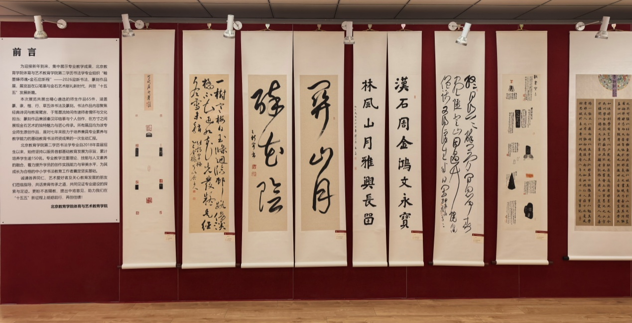 为喜迎新年、集中展示专业教学成效,北京教育学院体育与艺术教育学院第二学历书法学专业“翰墨铸师魂・金石启新程”2026迎新书法篆刻作品展,历经数日精彩呈现,圆满落下帷幕。本次展览以笔墨丹青与金石篆刻艺术为载体,献礼新时代发展,共贺“十五五”规划新征程,既完成了对书法学专业教学成果的集中检阅,更充分展现了师生的文化情怀与艺术追求。