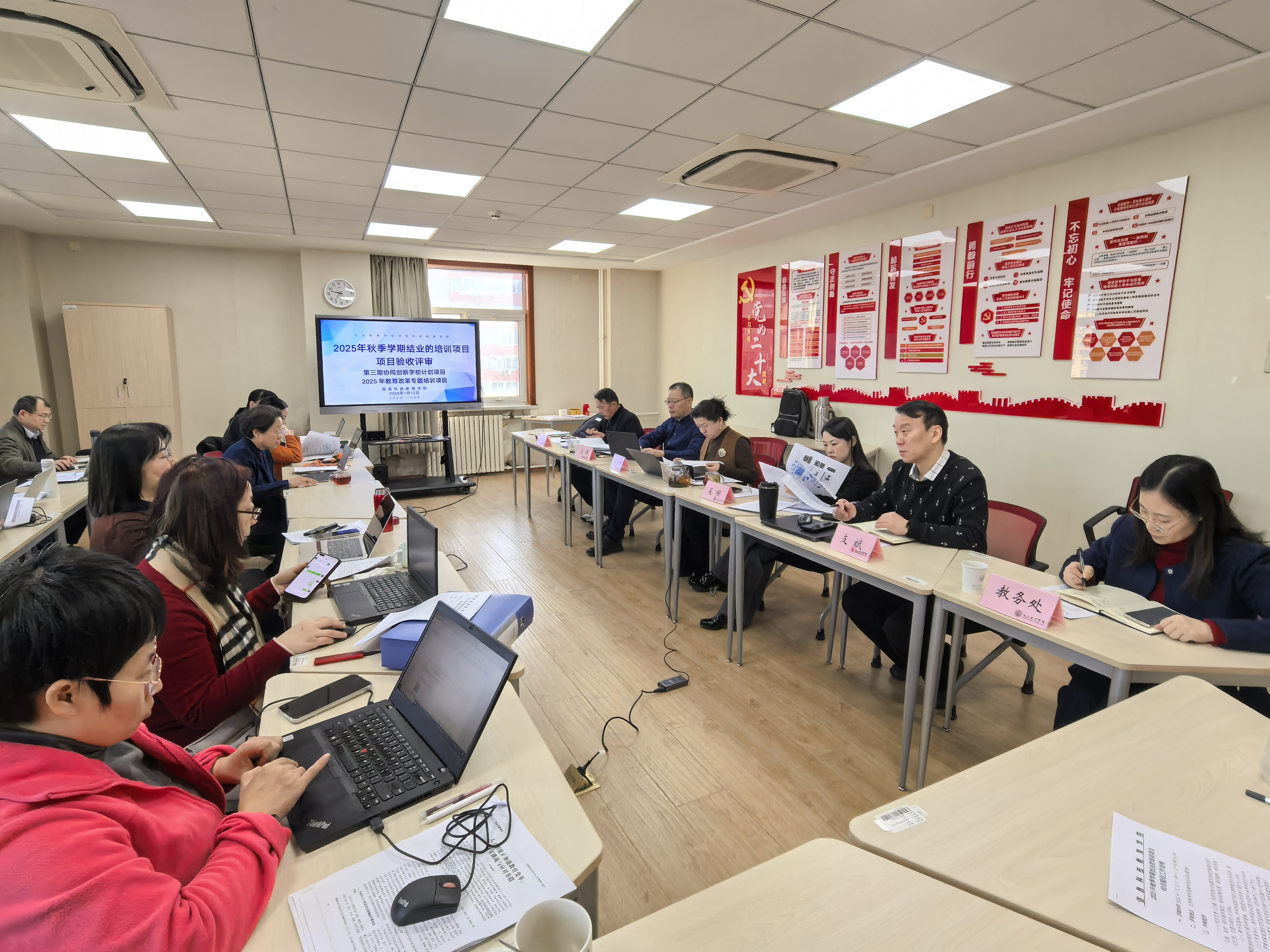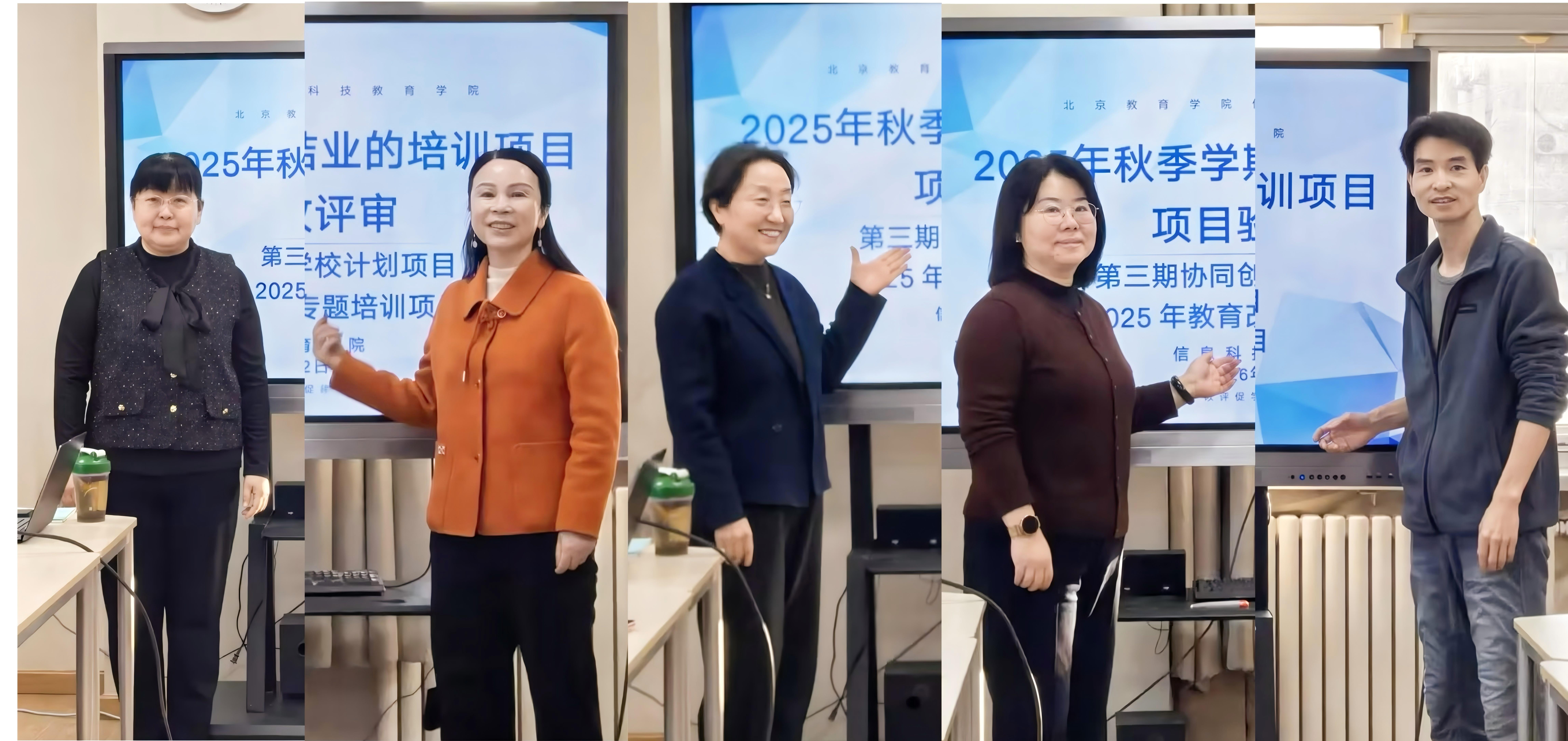 根据学院教务处关于结业项目验收工作的部署要求,信息科技教育学院于1月12日组织召开了2025年秋季学期结业培训项目验收评审会。会议特邀丰台区教育学院副院长马涛、东城区教育科学研究院师训部主任束旭两位专家,对已结业的第三期协同创新学校计划和专题培训等6个项目进行了验收评审。信科学院班子成员以及全体教师、教务处耿永华老师参加会议,评审会由信科学院副院长胡淑均主持。