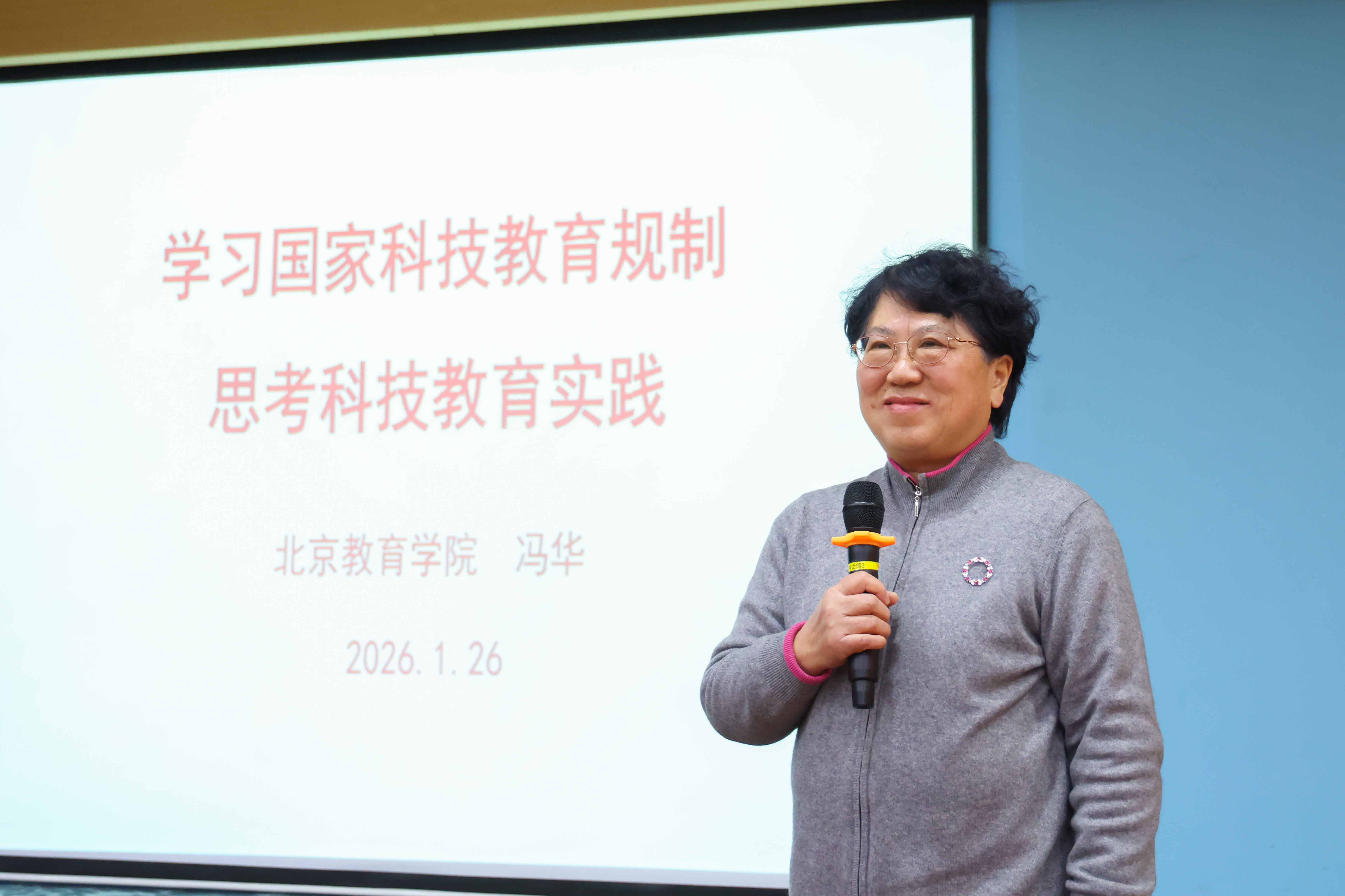 为深入贯彻国家科技教育战略部署,受北京市经济技术开发区委托,数学与科学教育学院承办的经开区中小学科技教育教学干部培训项目于1月26日至29日在北京市亦庄实验中学成功举办。本次培训以 “核心素养培育与人工智能赋能背景下的科学教学与管理创新” 为主题,围绕提升政策理论素养、强化技术应用能力、提升课程领导力、创新科学教学实践等目标,开设国家科学教育政策解读、科学教育前沿、人工智能赋能科学教育、学校科学课程体系建设、核心素养导向的科学教学(跨学科课程开发、STEM课程设计与实施)等课程,采用专家引领、案例剖析、沉浸式学习、交流研讨等形式,为来自多所学校的八十余名中小学科技教师带来了一场理念革新与实践启发的深度研修之旅,共同探索科学教育的系统转型路径。
