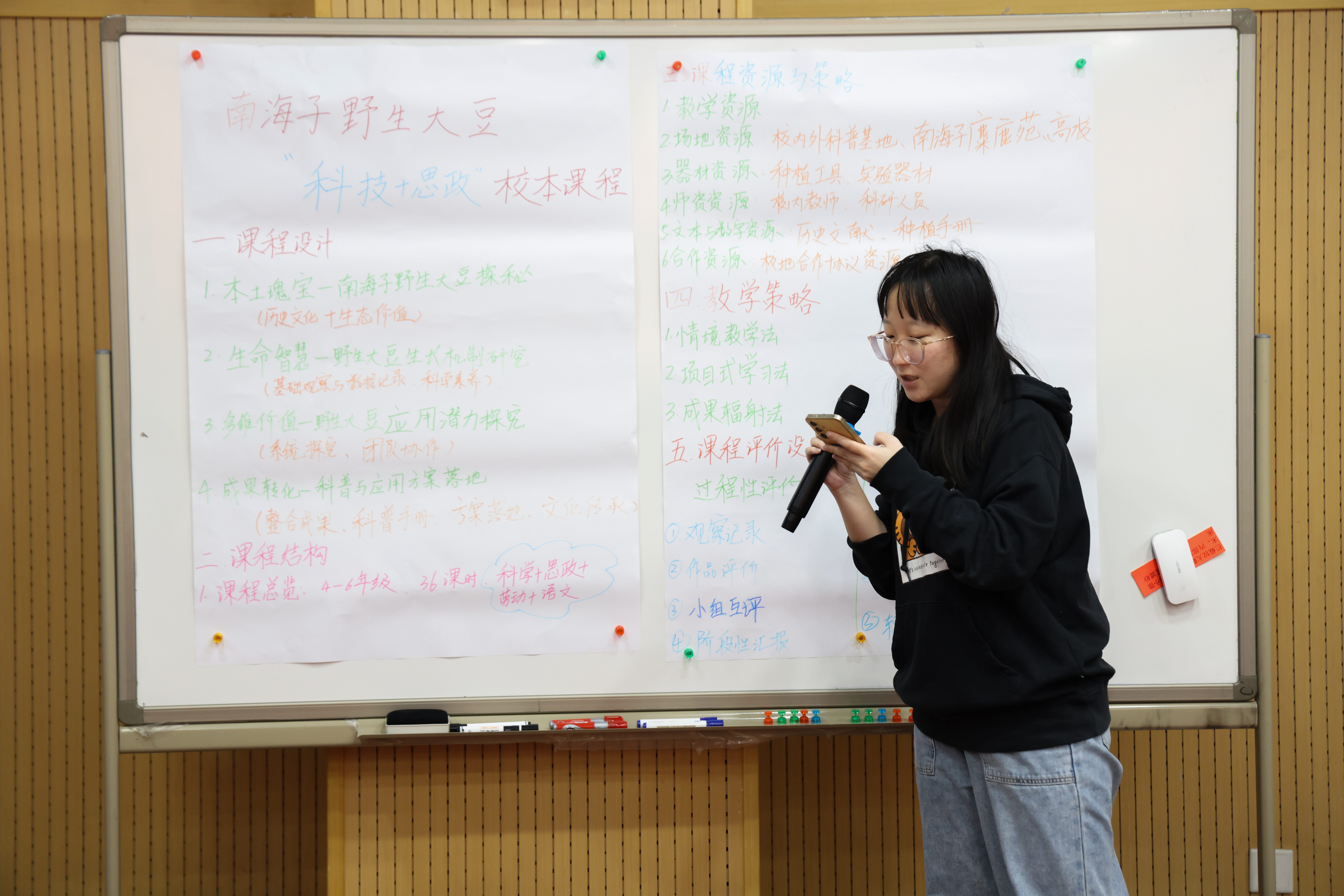 来自多所学校的教师结合实践和培训期间的学习内容进行成果转化和分享。经开二小的《南海子野生大豆》“科技+思政”课程、亦庄实验中学在常态课中开展跨学科学习的系列案例、人大附中经开区学校的《习劳园》劳动科技课程、耀华京港学校的双语跨学科项目以及各校在老年关怀、营养健康、桌面机器人等领域的STEM探索,这些案例生动展现了项目式学习、跨学科整合、校本课程体系建设的丰硕成果和落地路径,体现了区域学校在推进科学教育转型中的主动性与创造力。