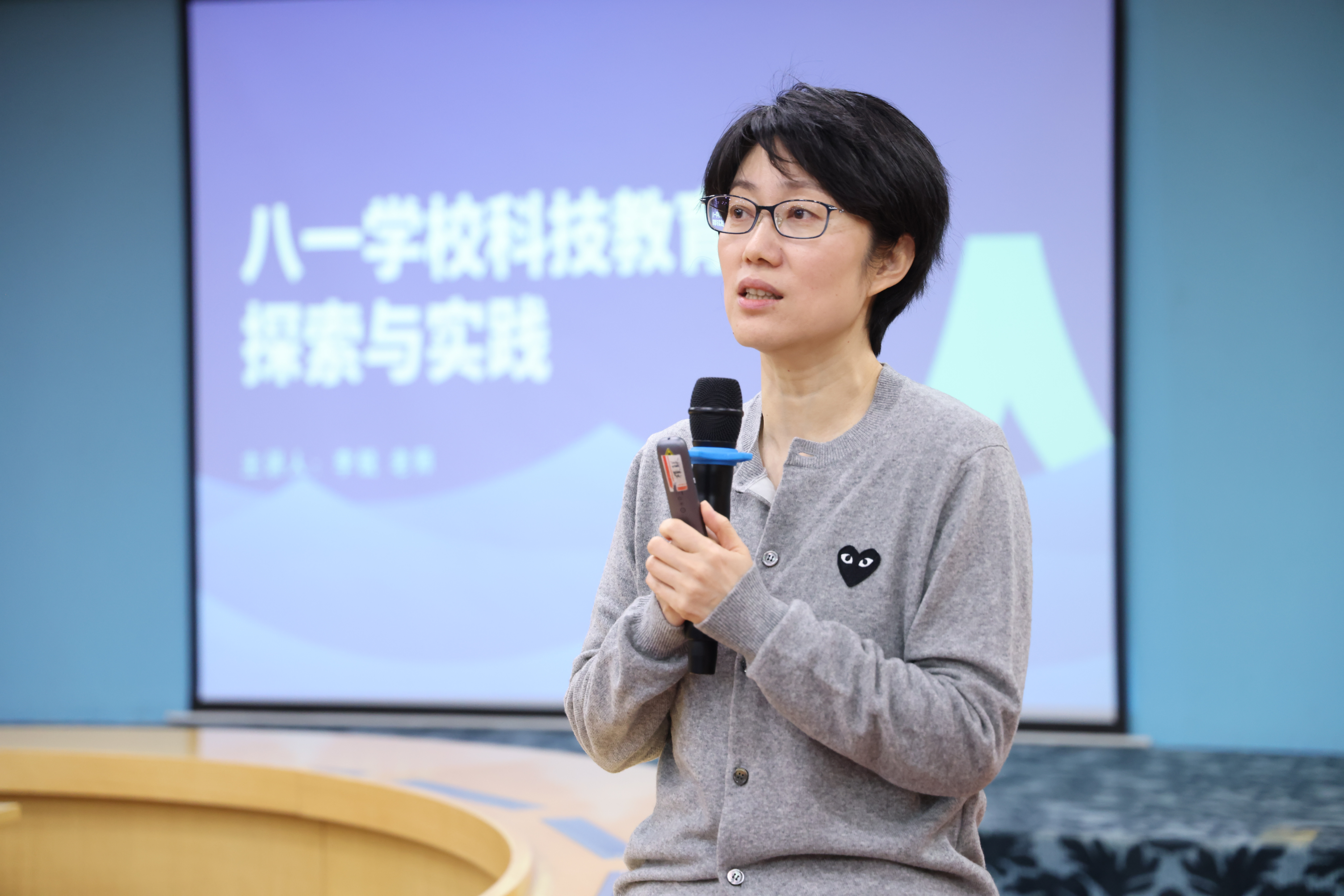北京市八一学校科信中心主任李锐老师分享了该校在科技教育领域的深耕经验。她分享了八一学校如何以任务式教学为抓手,构建了“破题—迭代—意义升华”的学习路径,并系统打造了支持学生从兴趣激发到创新实践的学习生态,其航天、机器人等项目形成了贯通小初高的培养体系。赵玉萍老师则从课程论角度,系统讲解了跨学科校本课程开发的政策依据、经典理论与规范流程,并以“科幻电影中的物理”等亲历案例,生动演绎了如何基于学生兴趣与学校资源,开发出既符合标准又独具特色的校本课程。
