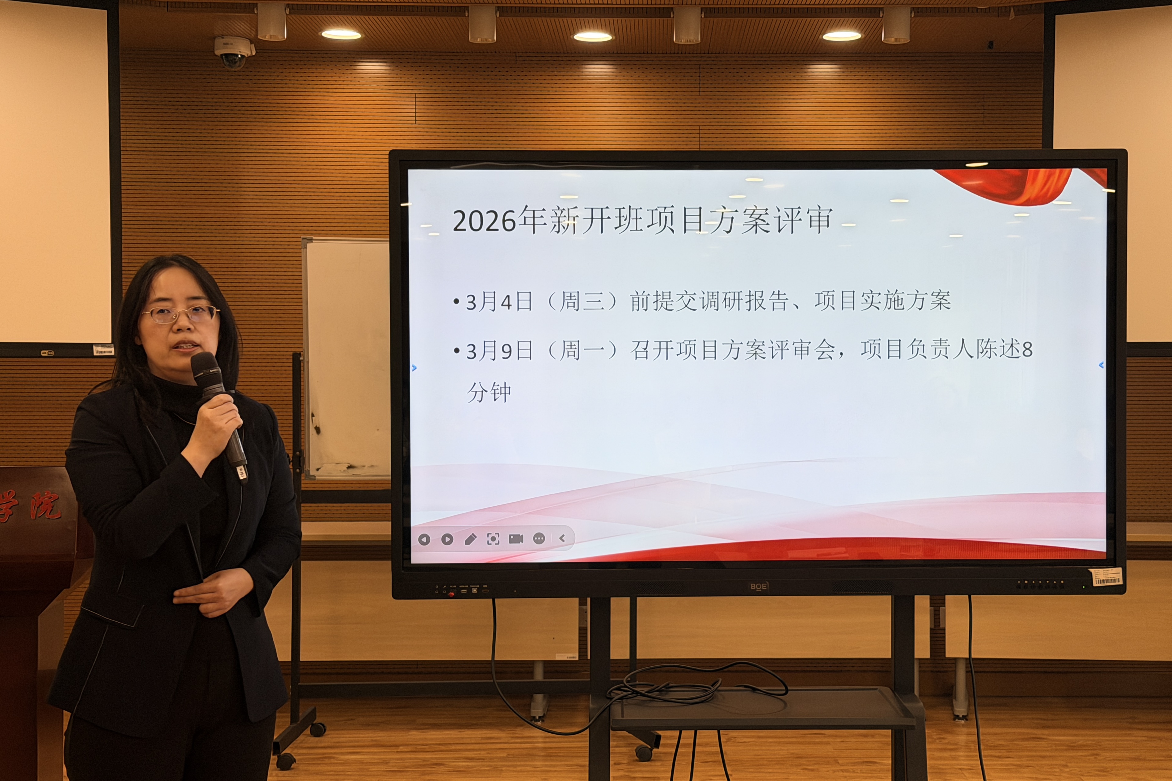 会上,沈彩霞副院长对近期新开班项目方案评审工作和学历教育开班相关工作进行部署安排,并指出新学期教学工作要加强系室集体教研,强化对国家政策要求和学院部署的落实,推进教学模式的创新和教学成果的培育。