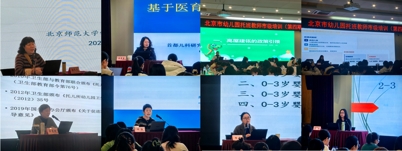 本期培训汇聚了来自北京师范大学、中国疾控中心妇幼保健中心、首都儿科研究所、上海市托育服务指导中心和北京教育学院等单位的权威专家,以及北京五幼城市副中心园、中国儿童中心托育园等一线实践工作者,围绕“托幼一体化”政策内涵、医育融合、托班教师角色定位与职业素养、3岁以下儿童身心发展、托班卫生保健、0-3岁亲子活动组织、幼儿活动与发展支持等核心主题开展系列讲座。课程从理念引领到实践操作,为全体参训教师提供了高水平、强指导、重实效的专业培训。