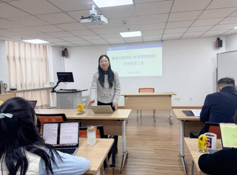 随后,陈丹院长立足“十五五”开局之年发展节点,对学院春季学期重点工作作出总体部署。她指出,新学期开局节奏紧凑、任务密集,全体教职工要增强责任意识和使命担当,紧跟新的发展形势与改革精神,落实教育强国首善之区建设要求,持续推动干部项目创新,提升干部培训质量与服务效能。积极回应人工智能时代发展趋势,探索人工智能赋能干部培训的实践路径,努力形成数智干训的经验成果和典型案例。