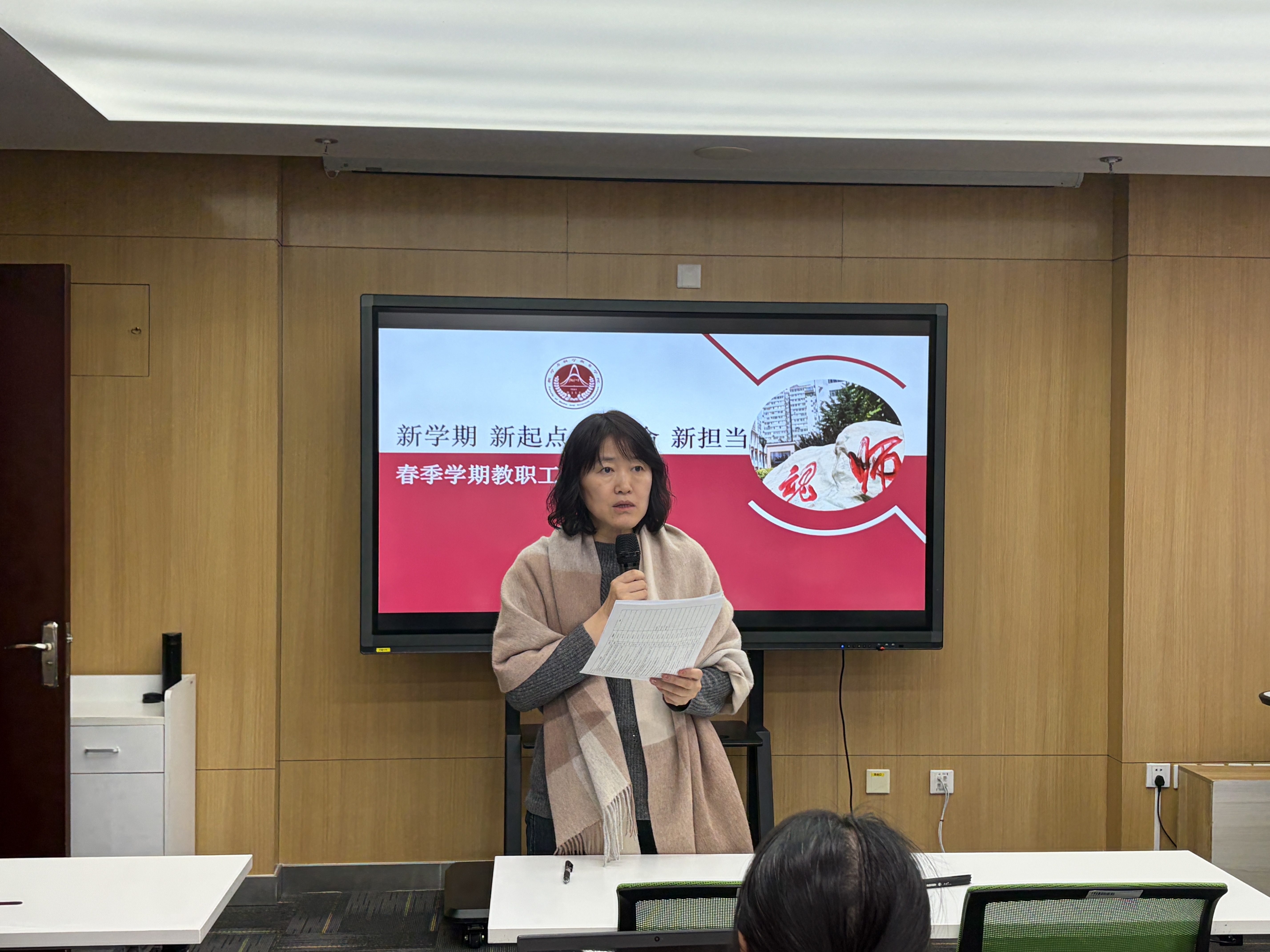 张学兵副院长对近期工作进行通知,各系室、各支部要认真开展新教师招聘、思想状况调研等工作,重点提示两会期间文兴街校区暂不安排大规模聚集活动,同时说明了学院阅览室、工会活动室等资源的情况,提醒各系室完成旧电脑资料拷贝、对接新设备安装工作。