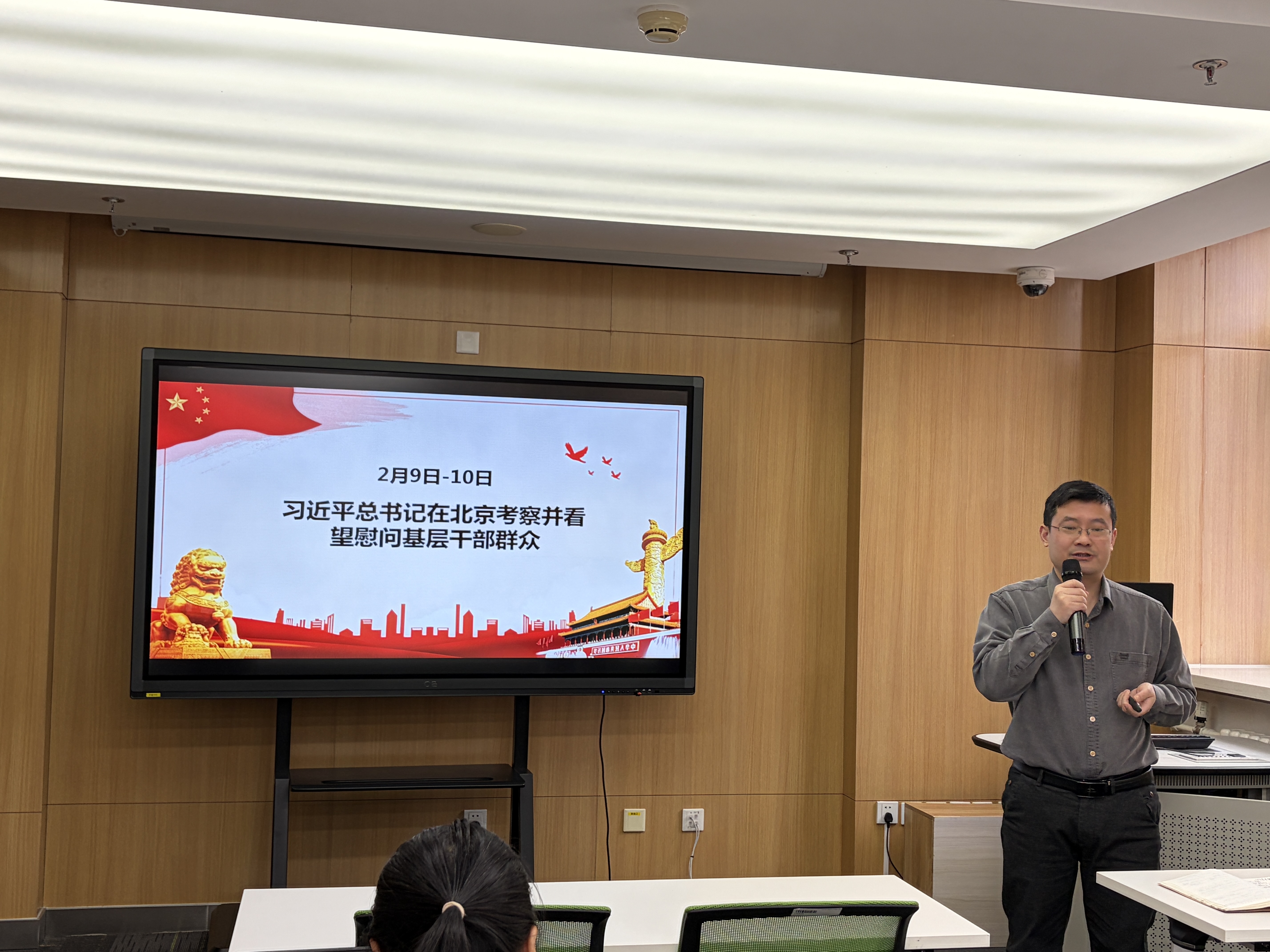 王钦忠书记带领全体教职工学习习近平总书记视察北京重要讲话精神,解读科技创新、超大城市治理、民生保障等核心要求,强调要将讲话精神落实到教学科研各环节。他部署了近期党建工作,要求各支部以落实中央八项规定精神、推进作风建设为主题,近期将开展组织生活会和民主评议党员工作,同时各支部需提交2026年工作计划和品牌建设方案。他还提出学院工作要紧扣“新育新质”核心理念,聚焦科技教育、人工智能、健康学校、实验教学和实验室建设、政绩观教育、一融双高六大关键词开展工作,打造学院特色品牌。
