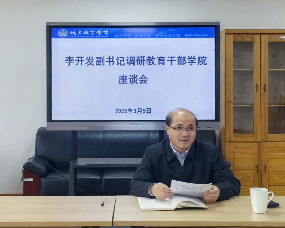 为精准把握教育干部学院发展实际,破解发展难题,强化二级学院工作指导,推动干部培训事业高质量发展,3月5日下午,学院党委副书记李开发深入教育干部学院开展专题调研座谈。李开发与学院领导班子开展面对面座谈,全面听取工作汇报,现场研究解决发展难题。本次座谈会由教育干部学院书记王鸿杰主持。