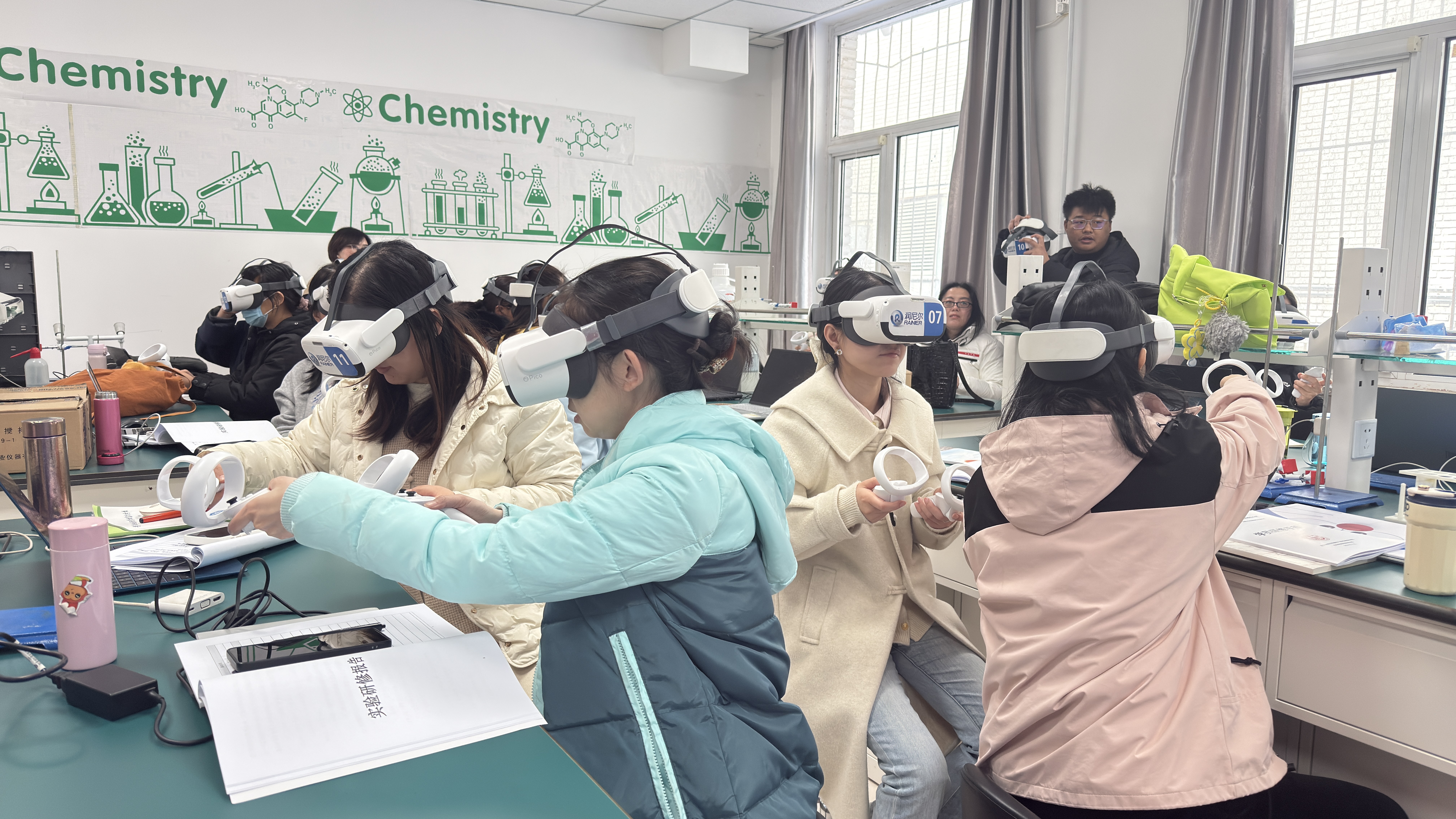 在沉浸式实操环节,参训教师化身 “数字实验操作者”,佩戴VR实验头盔、手持智能操作手柄,零距离体验虚拟仿真实验装置。在高仿真、零风险、全可视化的虚拟实验空间里,教师们完成实验操作、现象及数据采集全流程,直观感受VR技术将微观化学过程具象化、危险实验安全化、复杂实验简易化的强大优势,沉浸式体验科技为实验教学带来的全新变革。