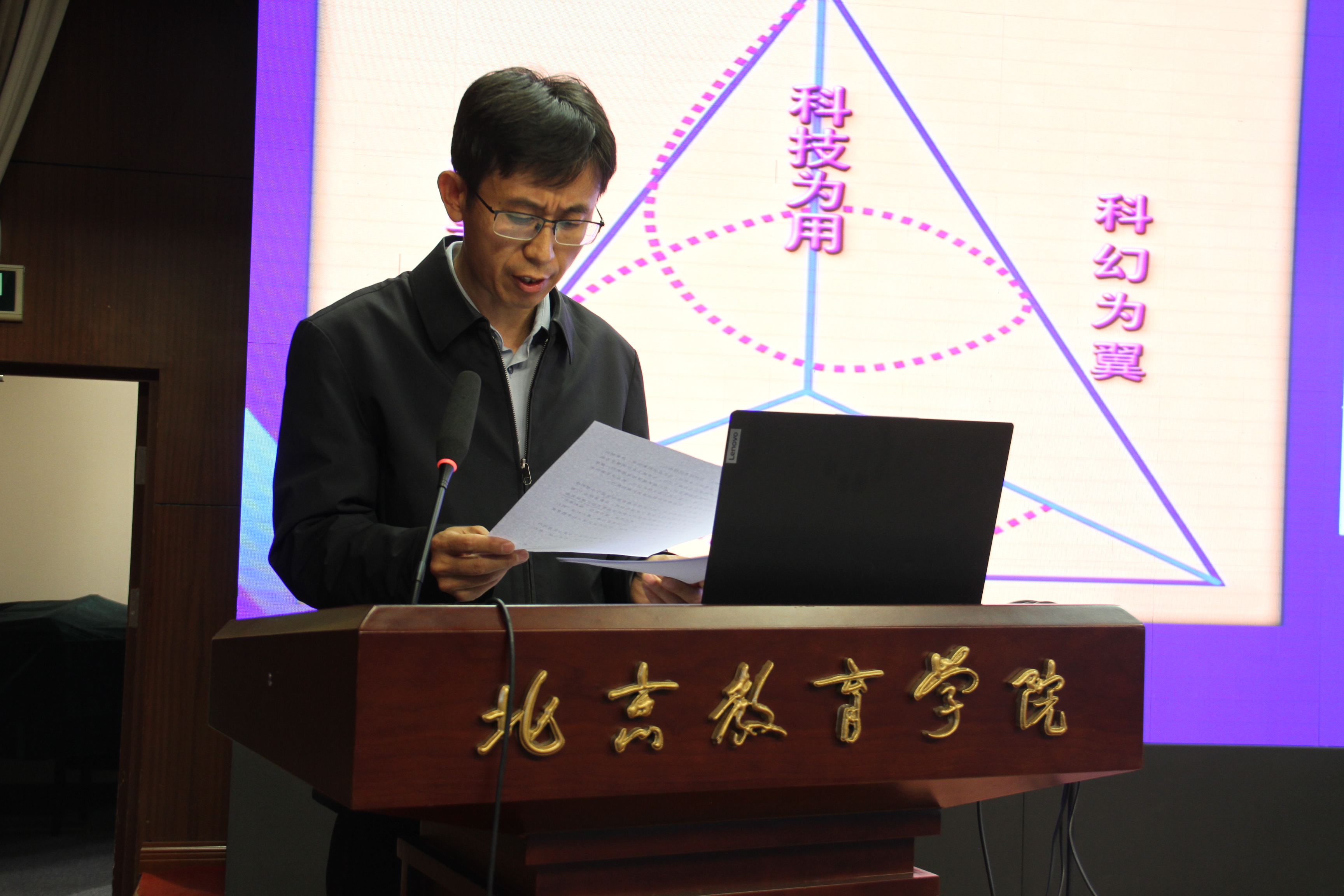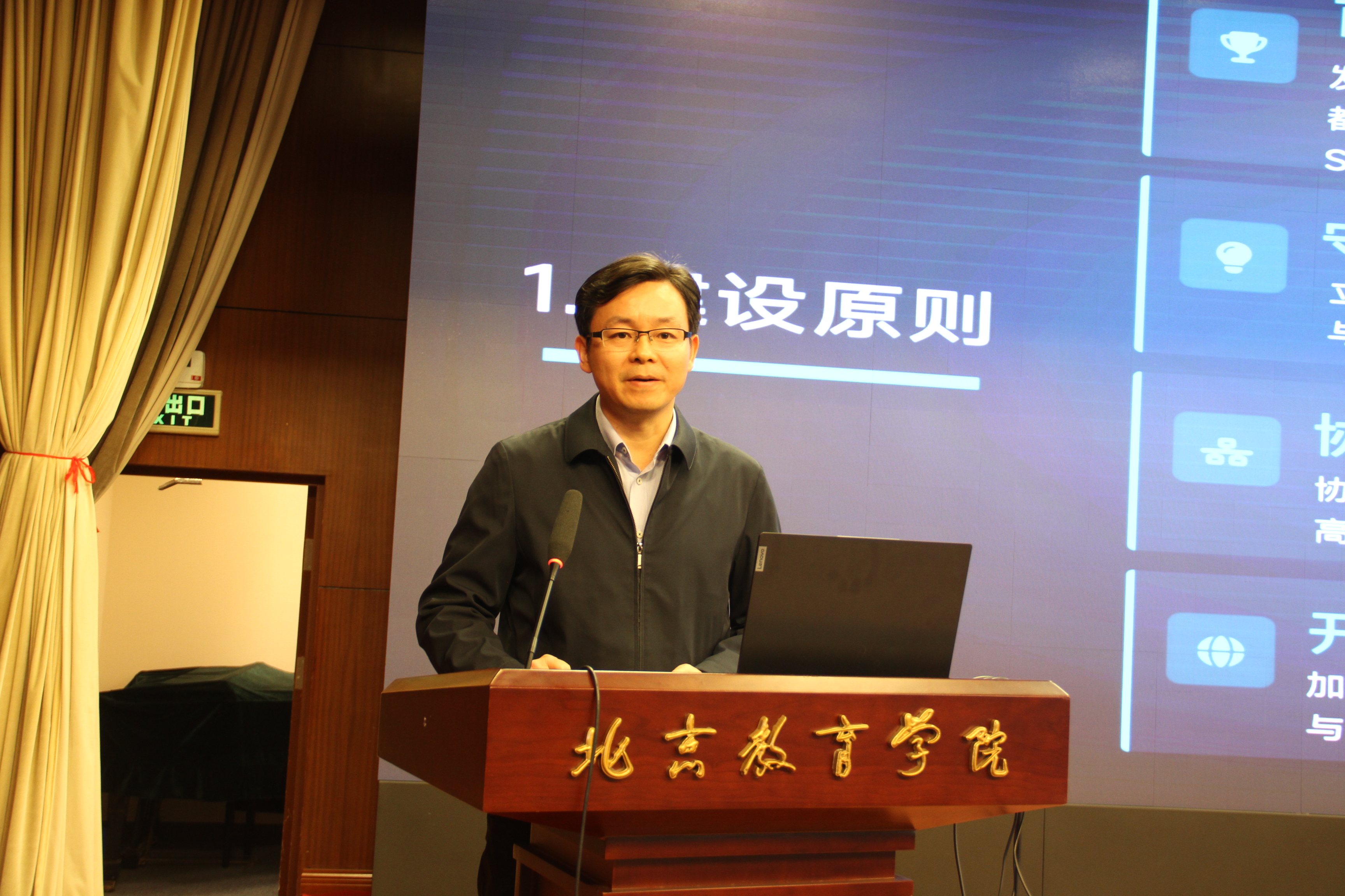 在方案解读环节,北京教育学院数科学院院长邓靖武对中小学教师科技教育(STEM教育)能力提升基地建设方案进行了系统阐述。方案立足首都国际科技创新中心的资源优势,锚定“新域新质教育”目标,深化“产教融合、科教融汇”,明确了未来三年的总体定位、重点任务和预期成果。随后,基地建设管理办公室主任、数科学院周莹副教授对第一期教师能力提升培训方案作了细致解读,培训方案紧扣基地建设要求,贴合中小学教师STEM教育教学实际,旨在让教师在真实科创场景中体验STEM教育、在实践操作中提升教学能力,确保每位学员都能学有所获、研有所得、用有所成。
