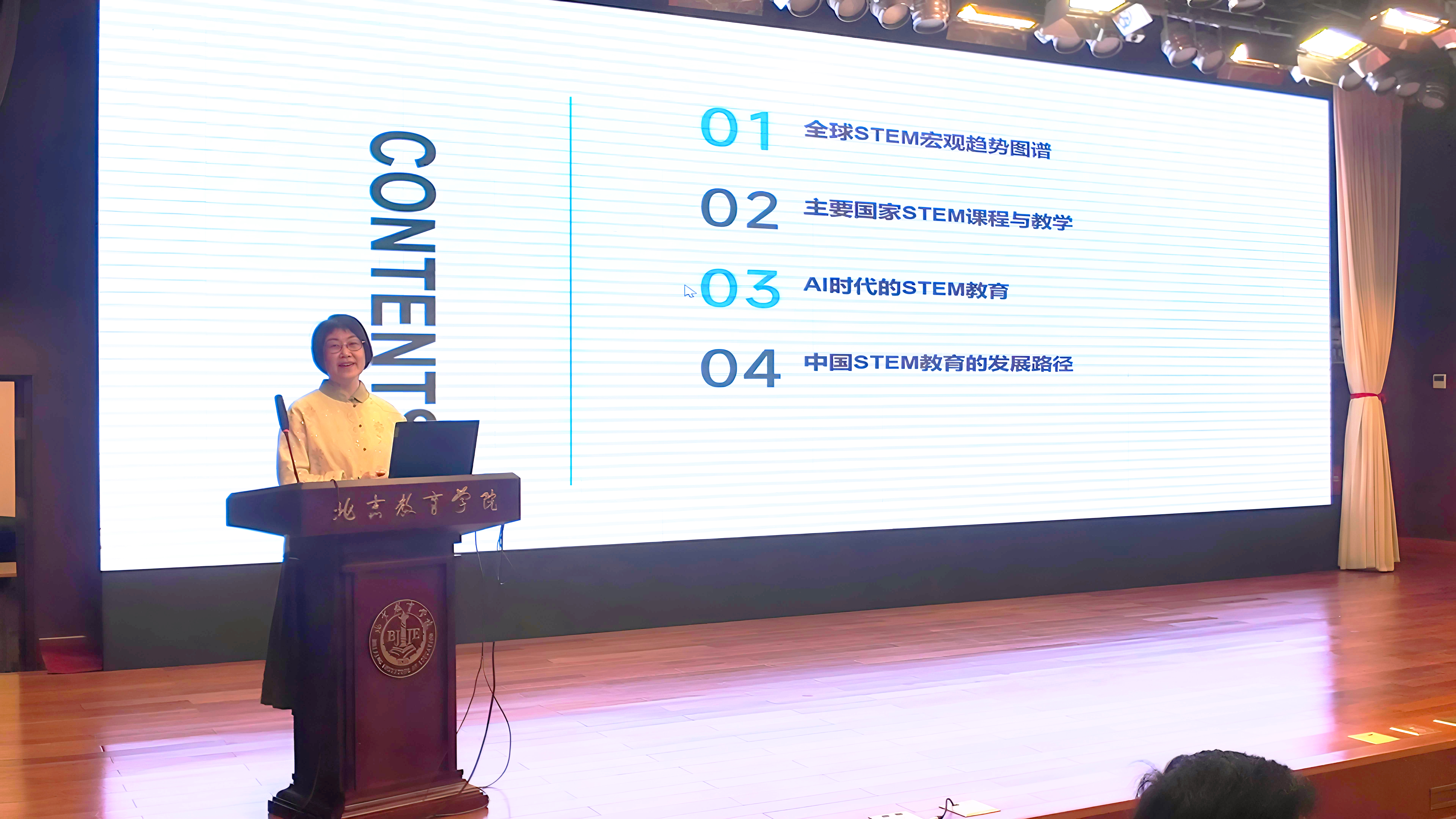 启动仪式结束后,中国教育科学研究院比较教育研究所研究员王素受邀作题为“国际视野下STEM教育发展趋势与中国实践创新”的专题讲座,王老师从STEM教育的发展历程、发展趋势、各国特色以及AI时代的STEM等方面呈现了STEM教育的脉络与概况,为学员深入理解和实施STEM教育活动提供理论指导。