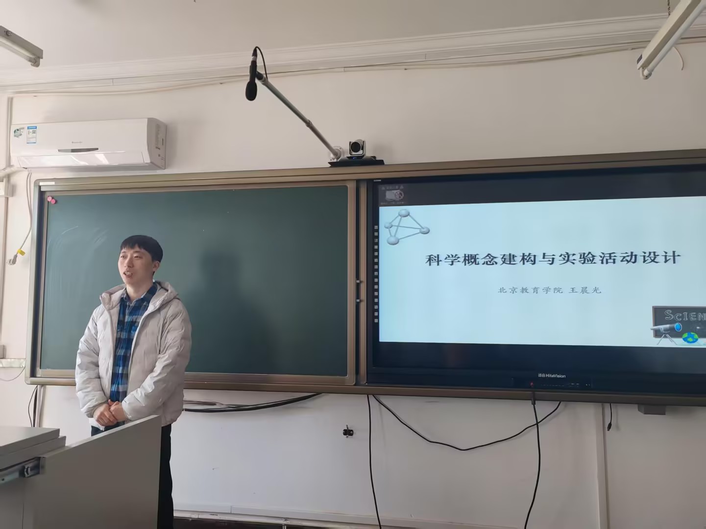 项目负责人、数学与科学教育学院科学教研室王晨光老师围绕“科学概念建构下的教学设计”主题,对培训方案进行系统解读,明确培训在知识、能力、态度责任等方面的目标要求,介绍课程结构与实施方式,帮助教师全面把握学习方向。