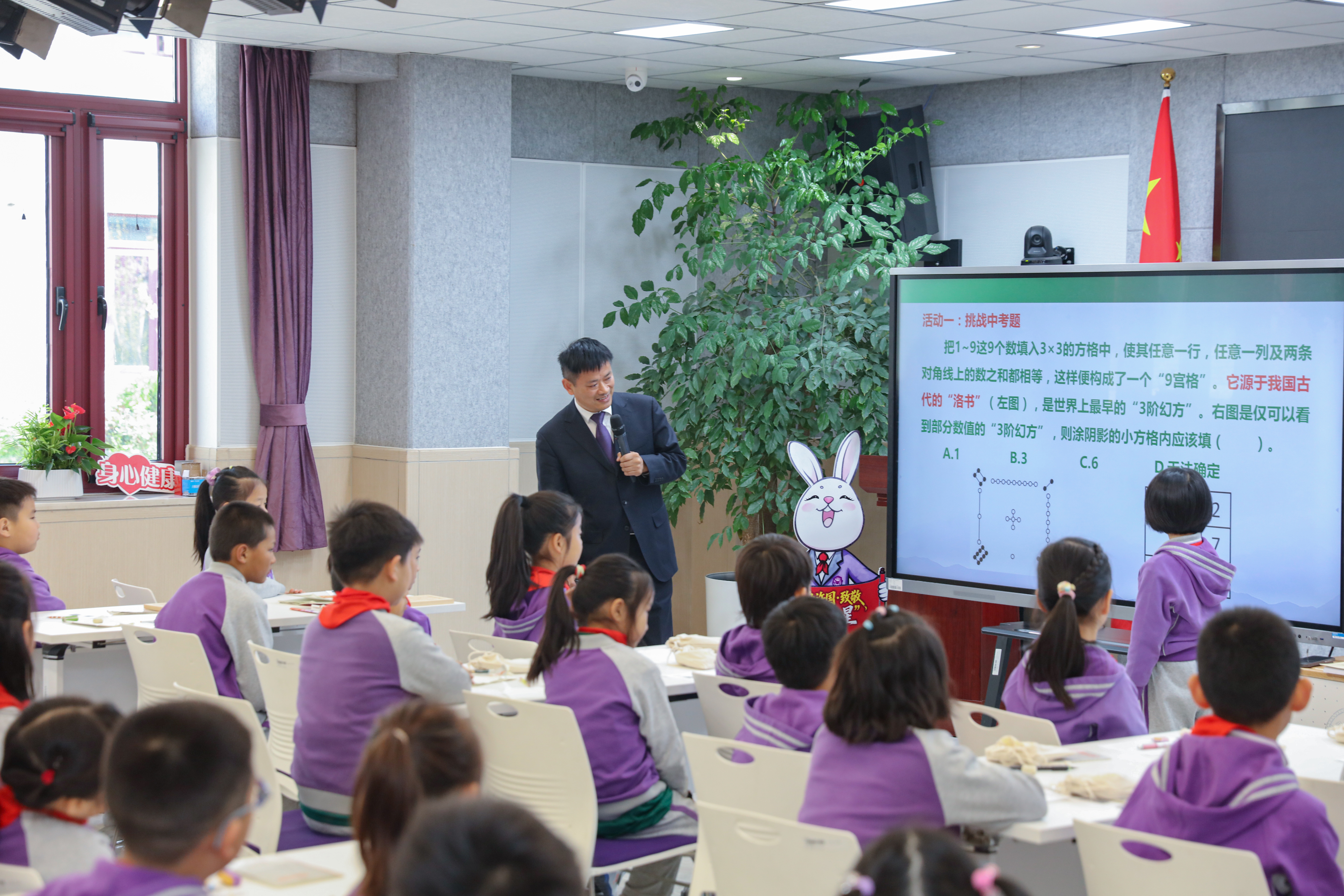 清华附小昌平学校陈军副校长执教的研究课《九宫图》让人眼前一亮。他大胆让二年级学生挑战中考难度的三阶幻方填数题,着重强调观察力与直觉思维的重要性。课程从幻方起源洛书娓娓道来,引导学生用数字小方块挑战九宫图,并详细介绍杨辉“九子斜排”的规律。陈校长还进一步拓展,讲解了四阶、五阶乃至十阶幻方的填法,以及数字替换的可能性。结合德国画家丢勒画作《忧伤》中的幻方元素,更是展现了数学与艺术的完美融合,让学生们在领略数学文化魅力的同时,激发了浓厚的探究兴趣。