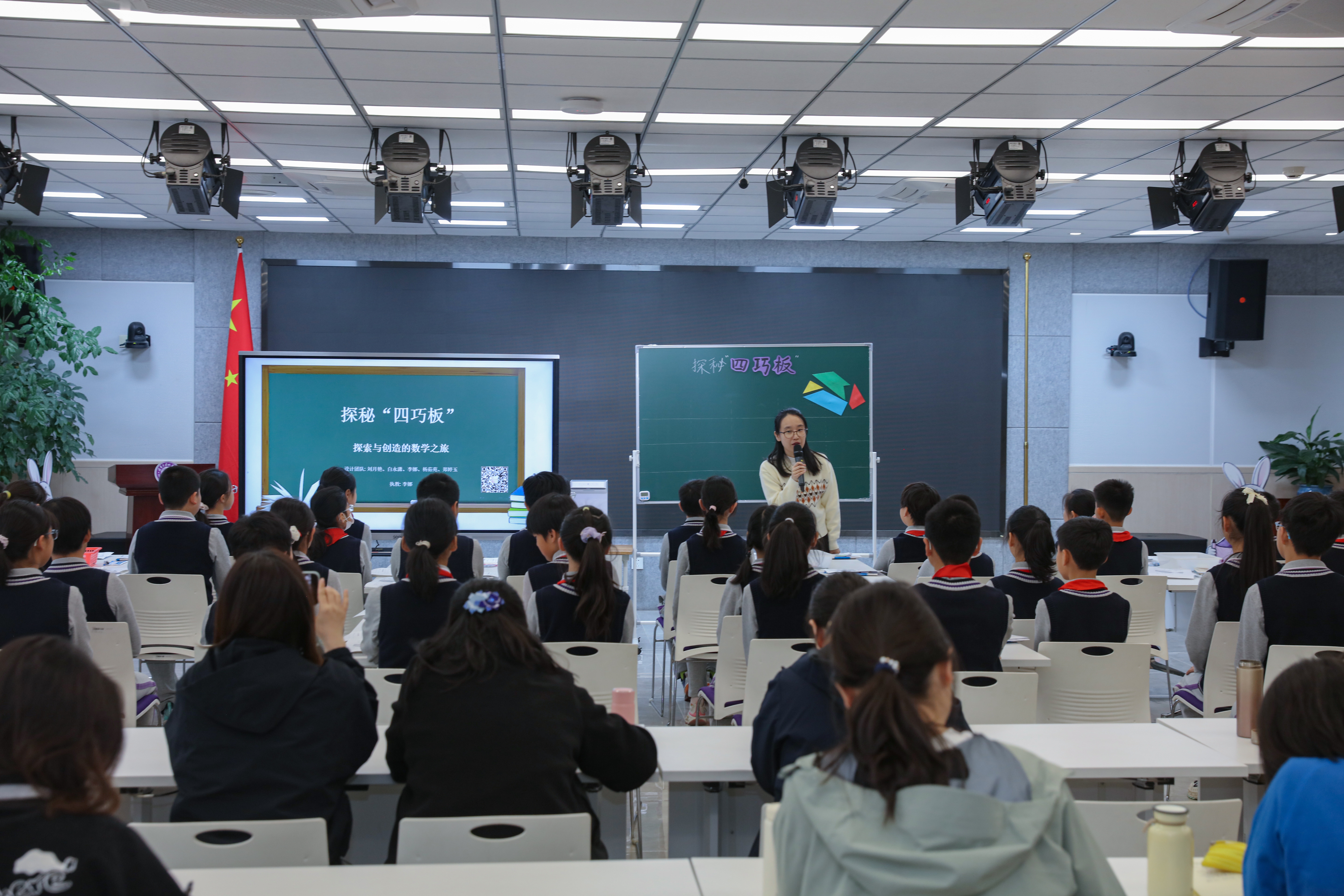 清华附小昌平学校的李娜老师执教的研究课《四巧板》别具一格。课程以数学家陈省身“数学好玩”的题词巧妙引入,点燃了学生们的学习热情。在引导学生认识四巧板的构成与特点后,学生们积极投入到拼摆长方形、“T”字型等图案的实践中。他们通过测量边、角数据,深入分析难度原因,逐步掌握了图形特征。拓展环节更是精彩纷呈,学生们勇敢挑战拼摆字母 L、路标、雁阵等形状,课后还兴致勃勃地尝试自主设计四巧板,有效发展了空间观念与几何直观能力。