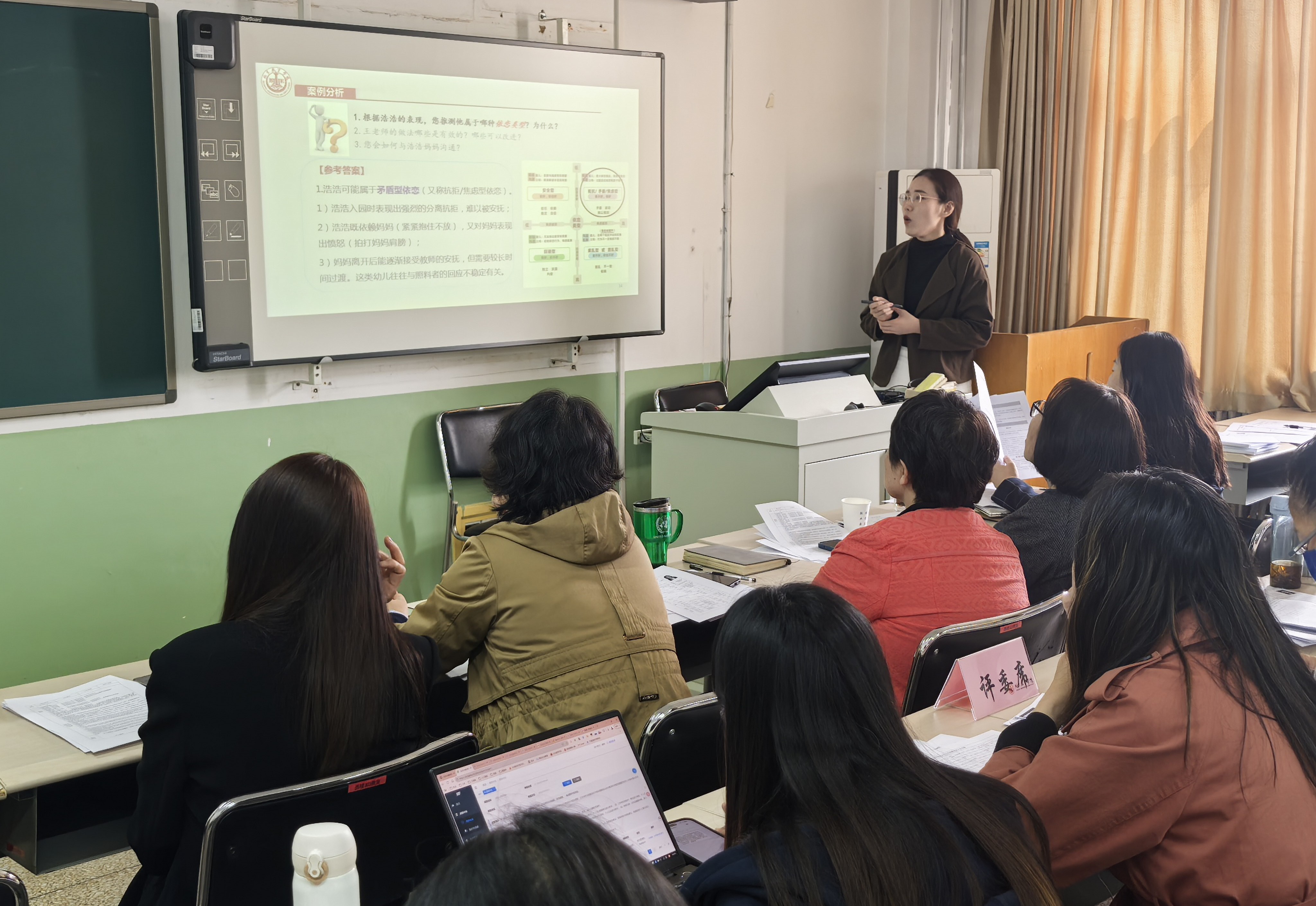 试讲开始前,行政人员收集了每位应聘者的45分钟教学设计、15分钟试讲PPT及相关学术成果证明材料。试讲过程中,学前教育学院全体专任教师针对应聘者的试讲内容进行了问答交流。之后,评议小组从授课能力、言语表达能力、教学思路、专业水平等方面对4名应聘者进行综合考察,并开展无记名打分。