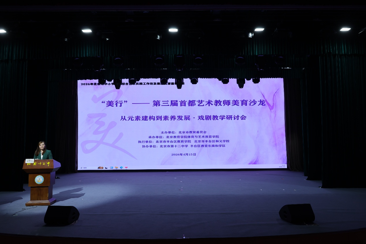 2026年4月15日下午,2026年北京市中小学教师综合艺术实践工作坊及课程资源建设项目在北京市第十二中学正式启动。项目实施以“美行”首都艺术教师美育沙龙——“从元素建构到素养发展”戏剧教学研讨会拉开序幕。本次研讨会以“美行”为核心标识,聚焦中小学戏剧教学实践创新,以理论研讨与成果展示双轨并行,深度探索戏剧育人新路径,助力提升学生综合艺术素养,扎实落实全面育人教育方针。