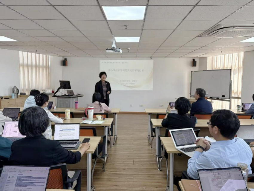 在专题讲座中,胡教授围绕“我国的校长培训政策演进”“我院的校长培训实践探索”“政策演进与学院实践带来的启示”三个部分展开讲述。讲座立足我国中小学校长培训发展的历史进程,从国家政策和学院实践两个维度,系统梳理了中小学校长培训的发展脉络,回顾了不同历史阶段校长培训的政策背景、目标要求和实践推进,重点呈现了北京教育学院在校长培训领域的持续探索与专业积累。围绕北京教育学院的相关实践,胡教授结合多年亲历与研究,回顾了学院在任职资格培训、高级研修班、名校长培养等方面形成的系列经验,重点介绍了“北京市中学校长高研班”等具有代表性的培训项目,展现了一代代干训人深耕首都教育、服务校长成长、接续探索创新的专业追求。整场讲座史料丰富、脉络清晰,兼具历史纵深与实践启发,为学院教师进一步把握干部培训发展历程、基本规律及深化专业认同提供了有益启示。