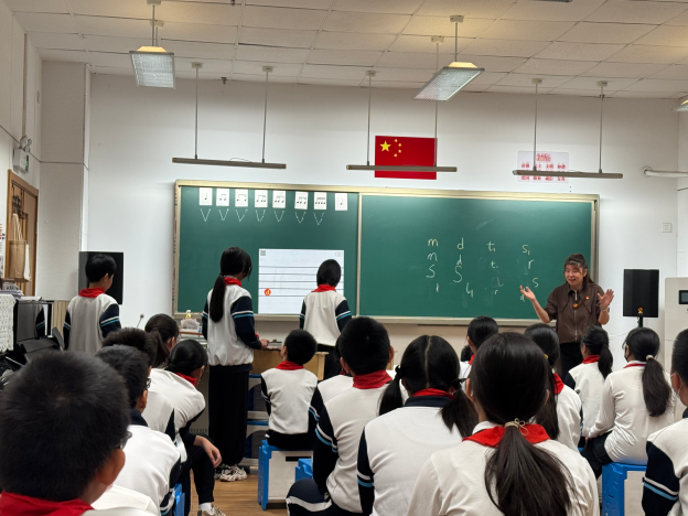 为深入推进五育融合,提升音乐新任教师教学实践能力,2026年4月23日,2025级音乐新任教师项目走进西城区进步小学,开展“艺术润心 美育未来——五育融合下的音乐教师美育实践活动”。本次活动以优质课观摩、专题讲座、研讨交流、现场实践为核心内容,特邀北京市音乐骨干教师王琛琛老师执教示范、专题授课,全体参训教师共同参与学习研讨。