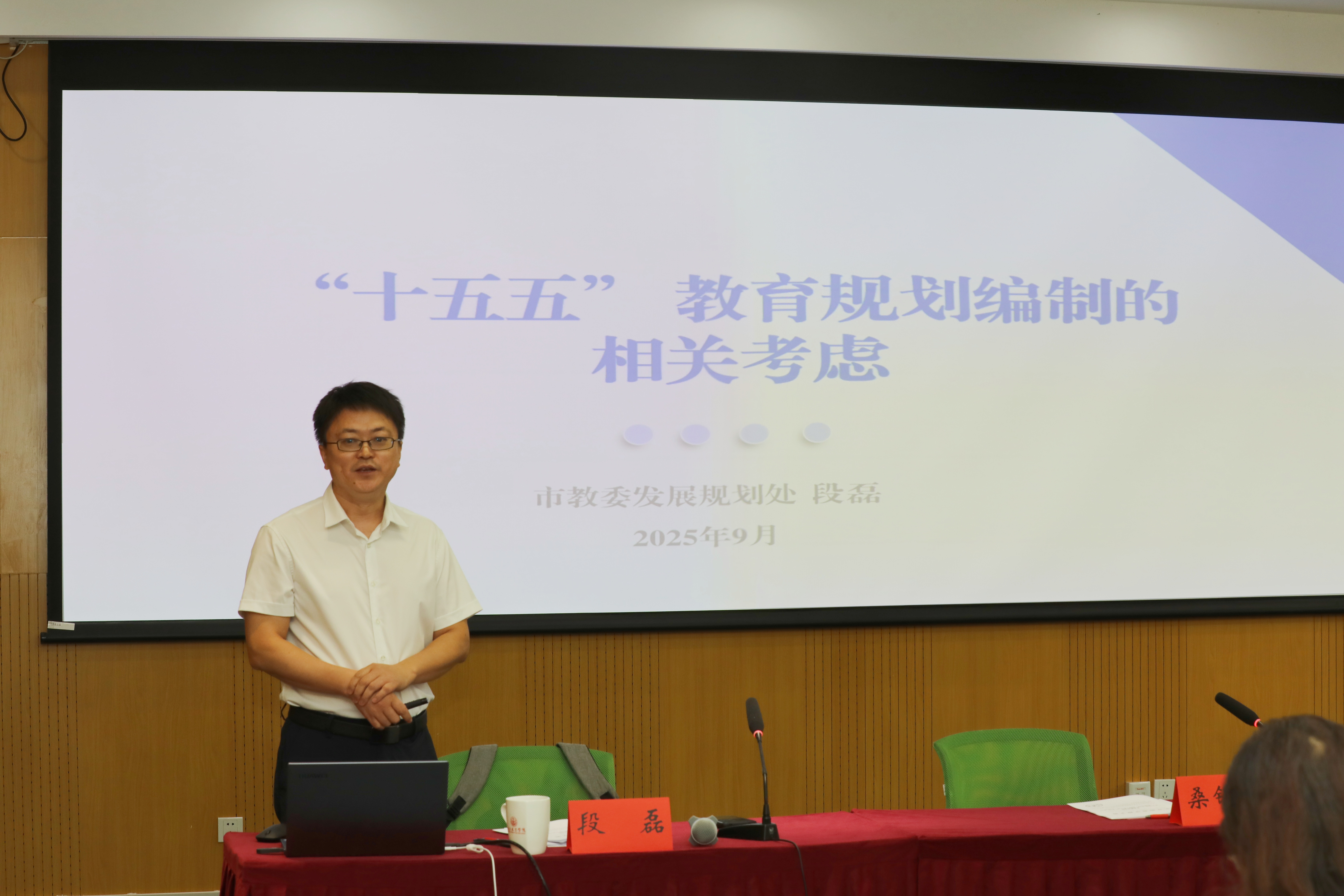 会上,段磊以“‘十五五’教育规划编制的相关考虑”为题,重点从如何看待规划、如何做好规划及对学院“十五五”时期发展规划编制工作的建议等三方面做辅导。