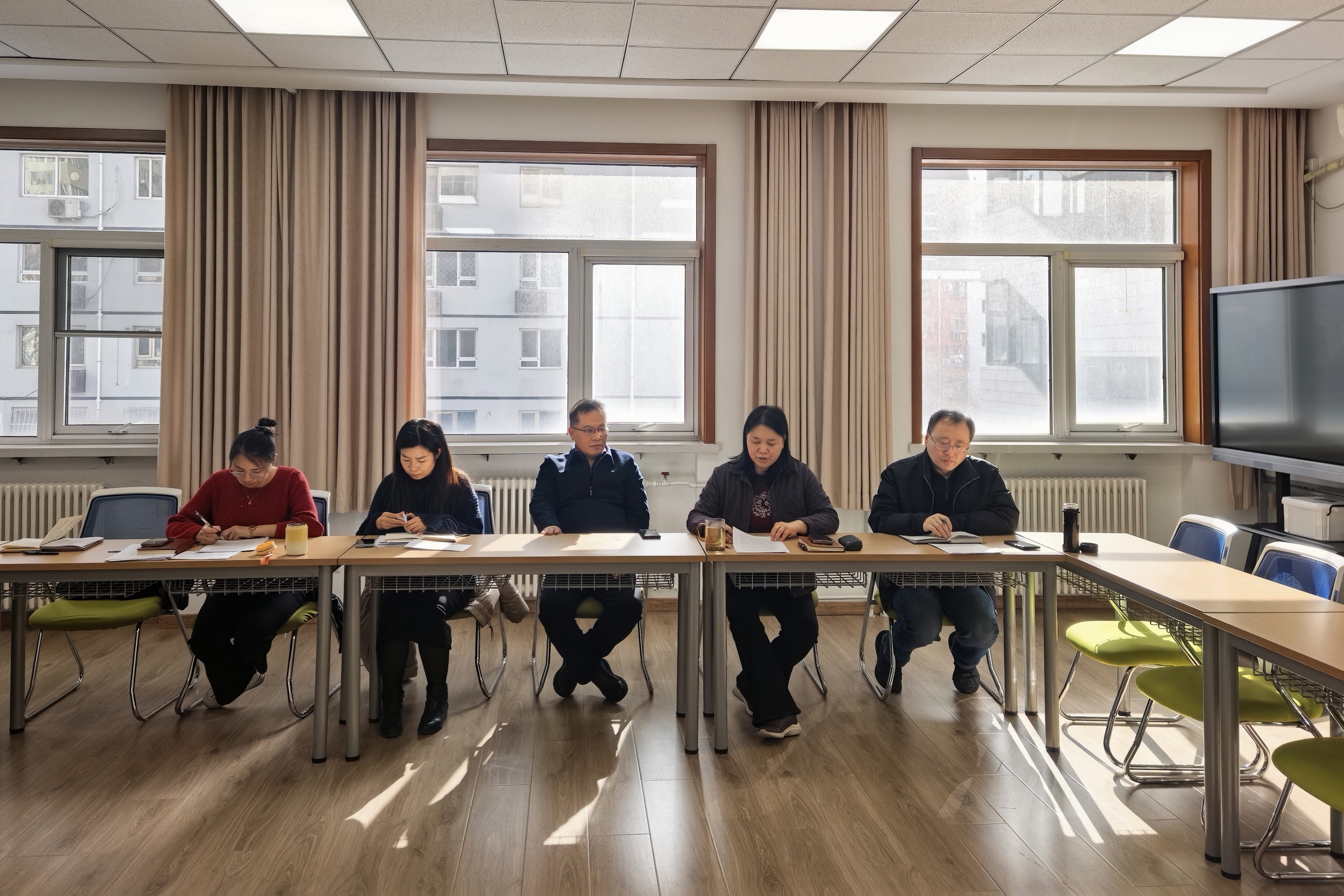 中层干部考核结束后,进入全体教职工考核环节。全体教职工结合过去五年聘期履职实际,逐一作全面总结汇报,既畅谈履职路上的心得感悟、分享工作经验,亦直面工作中的短板不足、深刻剖析问题根源与教训,同时围绕提质增效、优化工作提出了极具针对性的意见建议。王建华同志结合中层干部学习贯彻党的二十届四中全会培训班精神,以“笃信、务实、担当、自律”八字为准则,对大家提出了期望,勉励大家以更高标杆立身、以更严要求履职,奋力推动财务资产工作迈上新征程、实现新突破。
