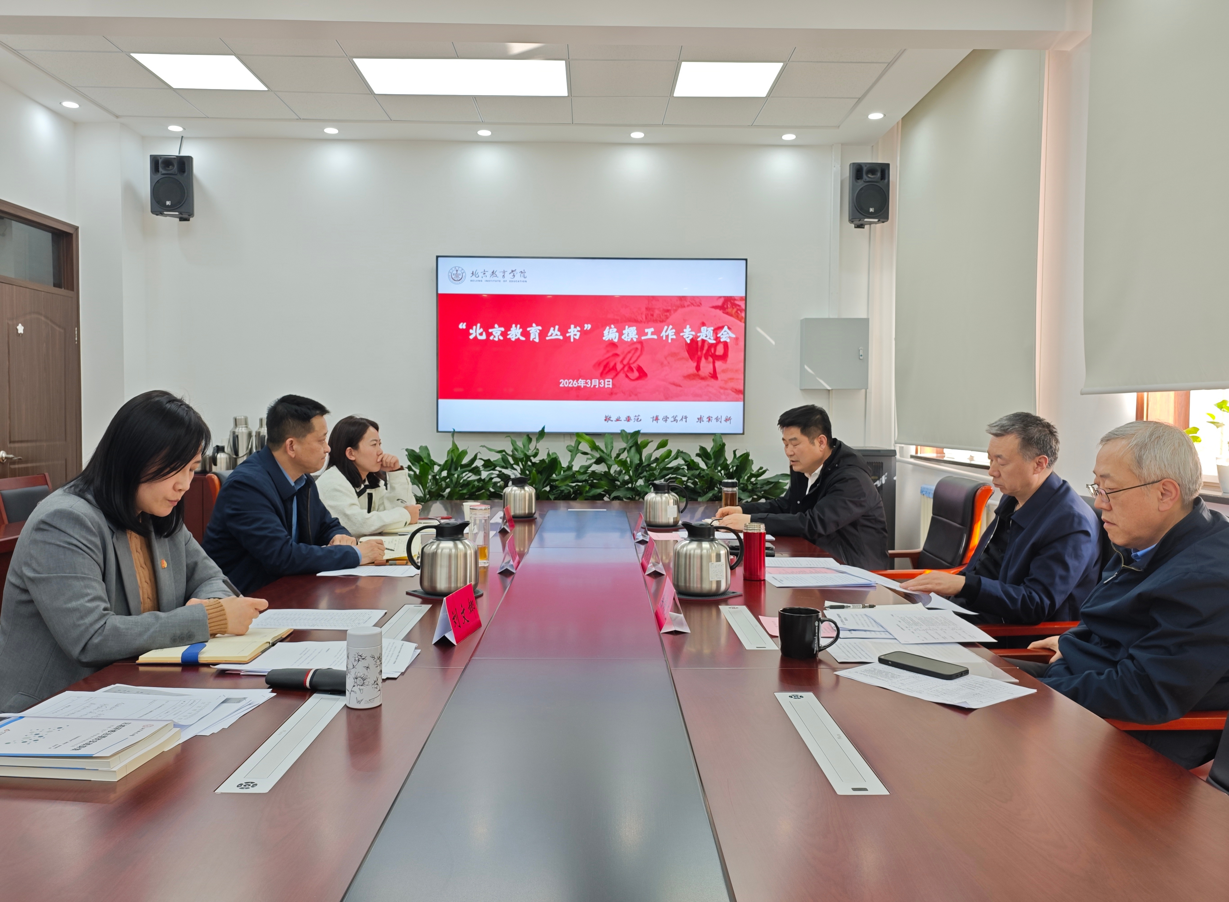 为扎实推进学院“十五五”时期发展规划任务落地,推动《北京教育丛书》转型升级,3月3日下午,学院召开“北京教育丛书”编撰工作专题会。学院党委书记张永凯、党委副书记、院长桑锦龙出席会议并讲话,党政办公室主任孙美红、学术资源部主任谢文华、副主任刘文娜参加会议。会议由学院党委常委、副院长庞成立主持。
